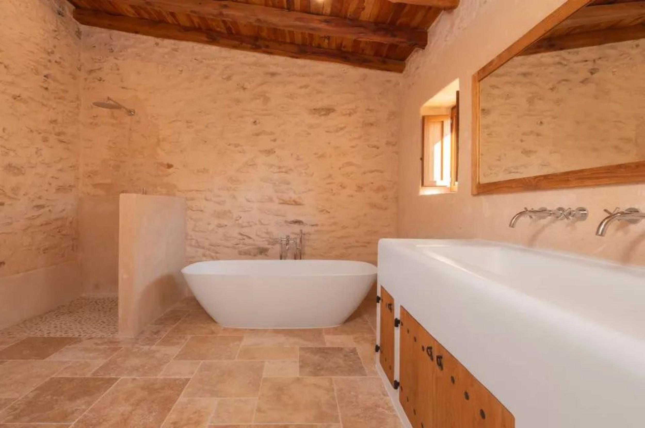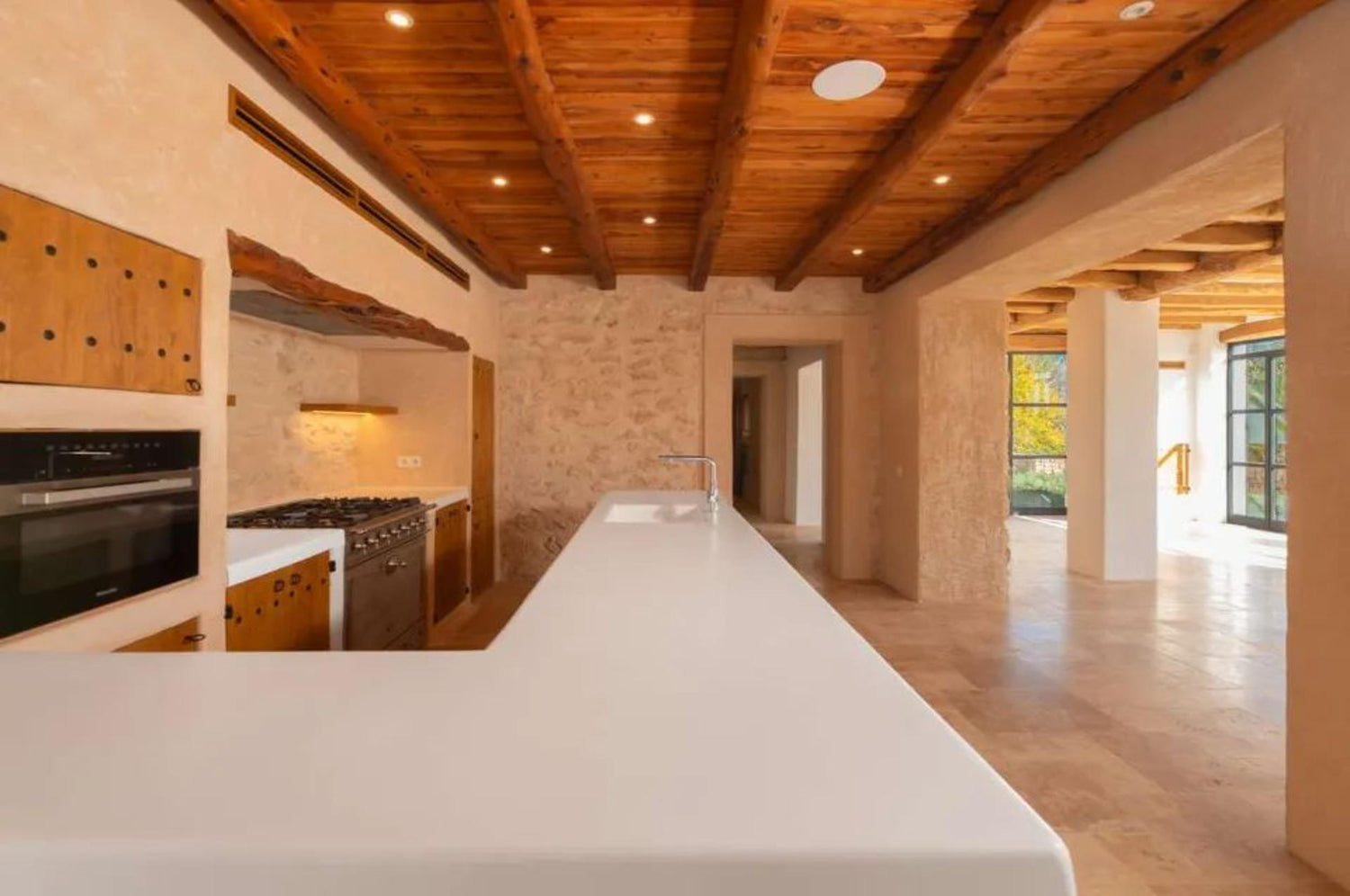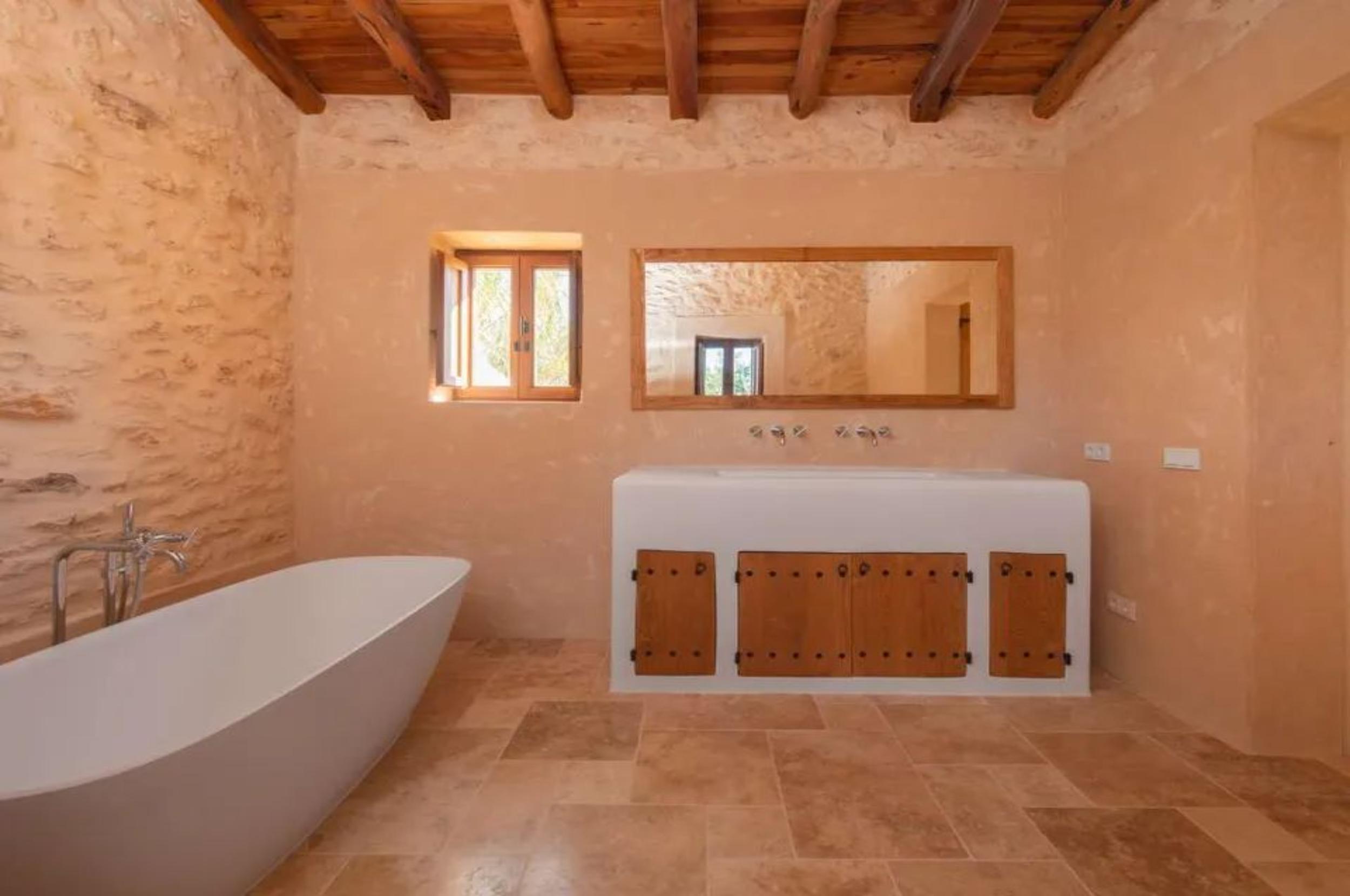 A beautifully restored nineteenth-century finca by Blakstad (twenty twenty five), offering six bedrooms and six bathrooms within a home that blends original stone walls, sabina and chestnut beams, and travertine floors with bright, generous living spaces designed for modern life. Reception areas and a large family kitchen open onto terraces overlooking a spacious pool set among mature olive and citrus groves, creating privacy and a true island atmosphere. With its southwest orientation and rare upper-level views toward Dalt Vila and the sea, the property enjoys warm light, long evenings, and memorable sunsets, making it ideal for both year-round living and relaxed entertaining.