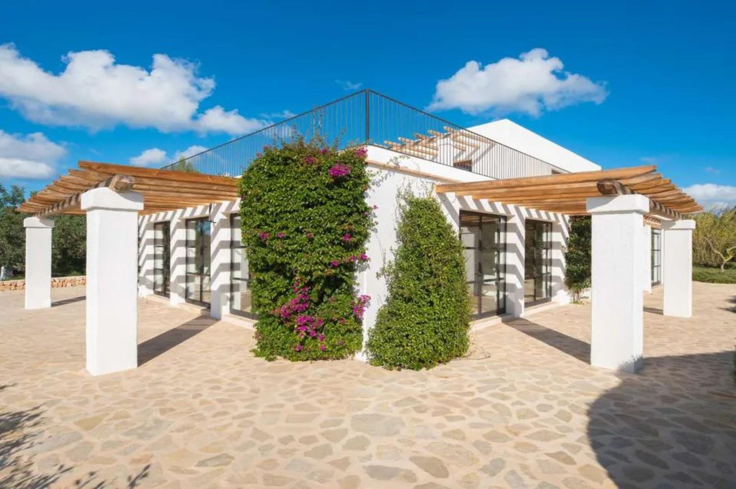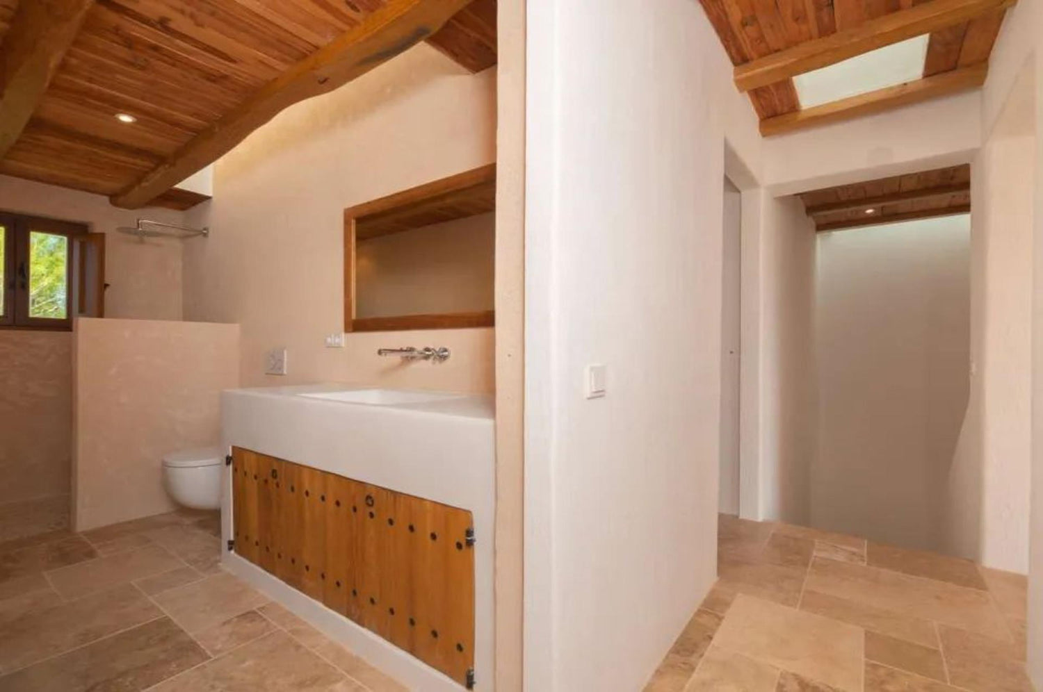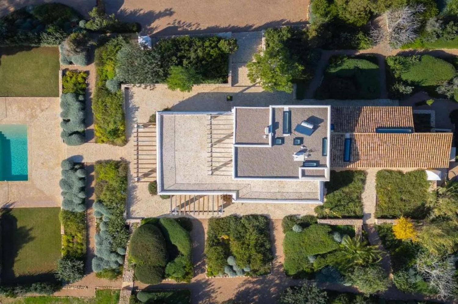 A beautifully restored nineteenth-century finca by Blakstad (twenty twenty five), offering six bedrooms and six bathrooms within a home that blends original stone walls, sabina and chestnut beams, and travertine floors with bright, generous living spaces designed for modern life. Reception areas and a large family kitchen open onto terraces overlooking a spacious pool set among mature olive and citrus groves, creating privacy and a true island atmosphere. With its southwest orientation and rare upper-level views toward Dalt Vila and the sea, the property enjoys warm light, long evenings, and memorable sunsets, making it ideal for both year-round living and relaxed entertaining.