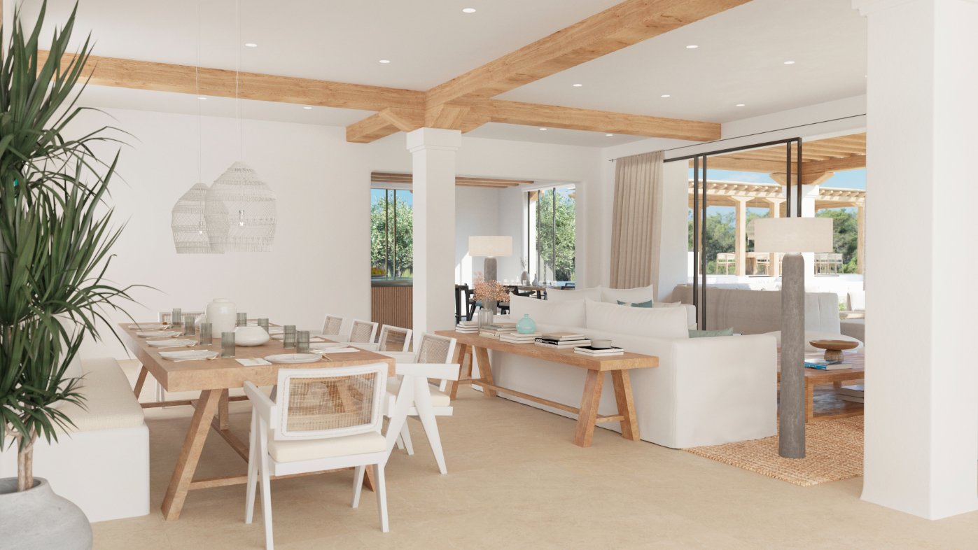 Situated on a privileged plot of land with direct access to the coastal path, verdant gardens and an exceptionally large pool, this villa is an extraordinary project. Its 540m2 of built space will undergo carefully curated renovations by Blakstad, the Ibiza architects known for their incomparable ability to enhance traditional features with clean lines and stylish contemporary design. With its spacious interiors, lovely staircase and wooden beams, this will be a very special villa. The property is approached through a secure electric gateway and a two-lane drive with plenty of parking. To the front, there is space for an abundant kitchen garden; to the rear, the 246m2 pool set within mature gardens gazes to the sea. This is an unparalleled opportunity to enjoy the luxury of life on the Ibiza coast where beautiful authenticity and modern design combine in one perfect, charismatic villa.