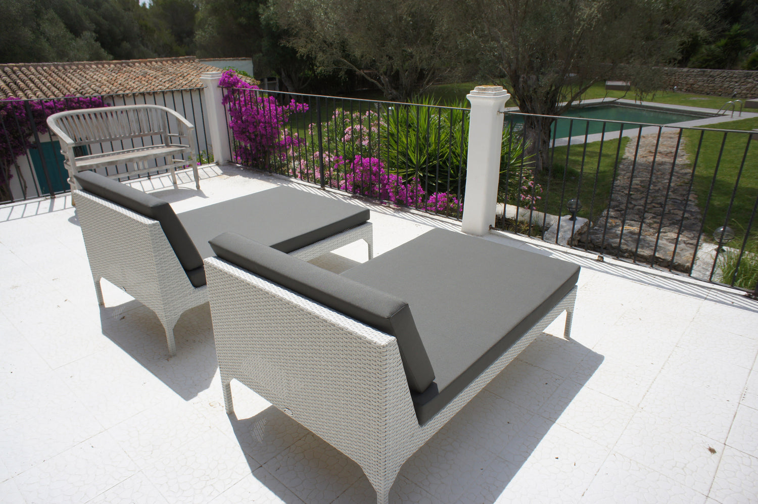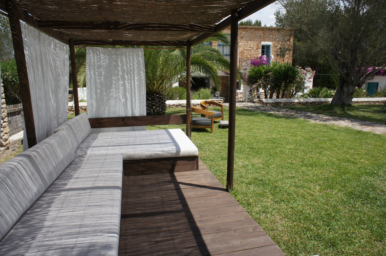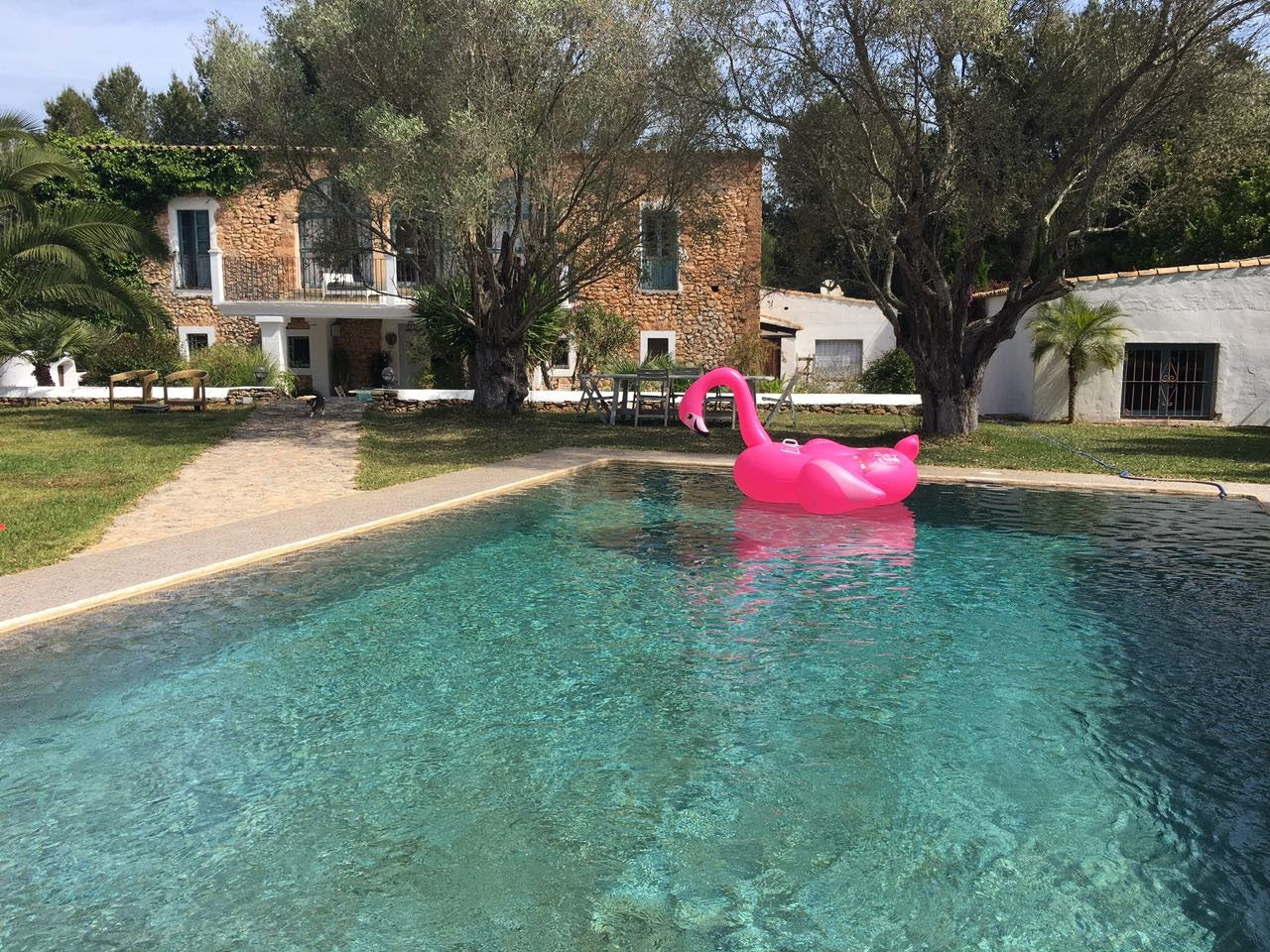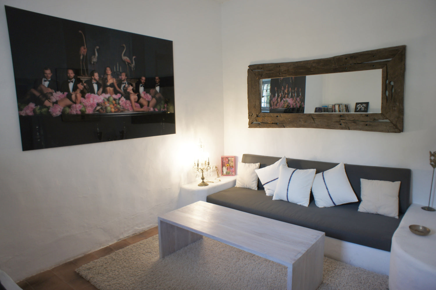 Built of mellow stone and sensitively restored to retain its quintessentially Ibizan character, this pretty house casts its magic at first view. A separate bougainvillea draped casita provides space for two of the bedrooms. It’s all surrounded by woods and mature gardens. Sunbeds and a gloriously bohemian Bali style daybed occupy the lawn surrounding the turquoise pool. A shady porch fits the house’s history and makes a lovely contemporary balcony off the bedroom above. Interiors pay homage to a life more simple, all terracotta tiles, bleached wood and original features. Yet they are embellished with that White Island style that reflects joy, light-heartedness and a few sparkles. Beaded chandeliers hanging from driftwood, expressively quirky modern artwork. Then, modern comforts are respected too, with air-conditioning, four bathrooms with large showers, WIFI and proper kitchen appliances.