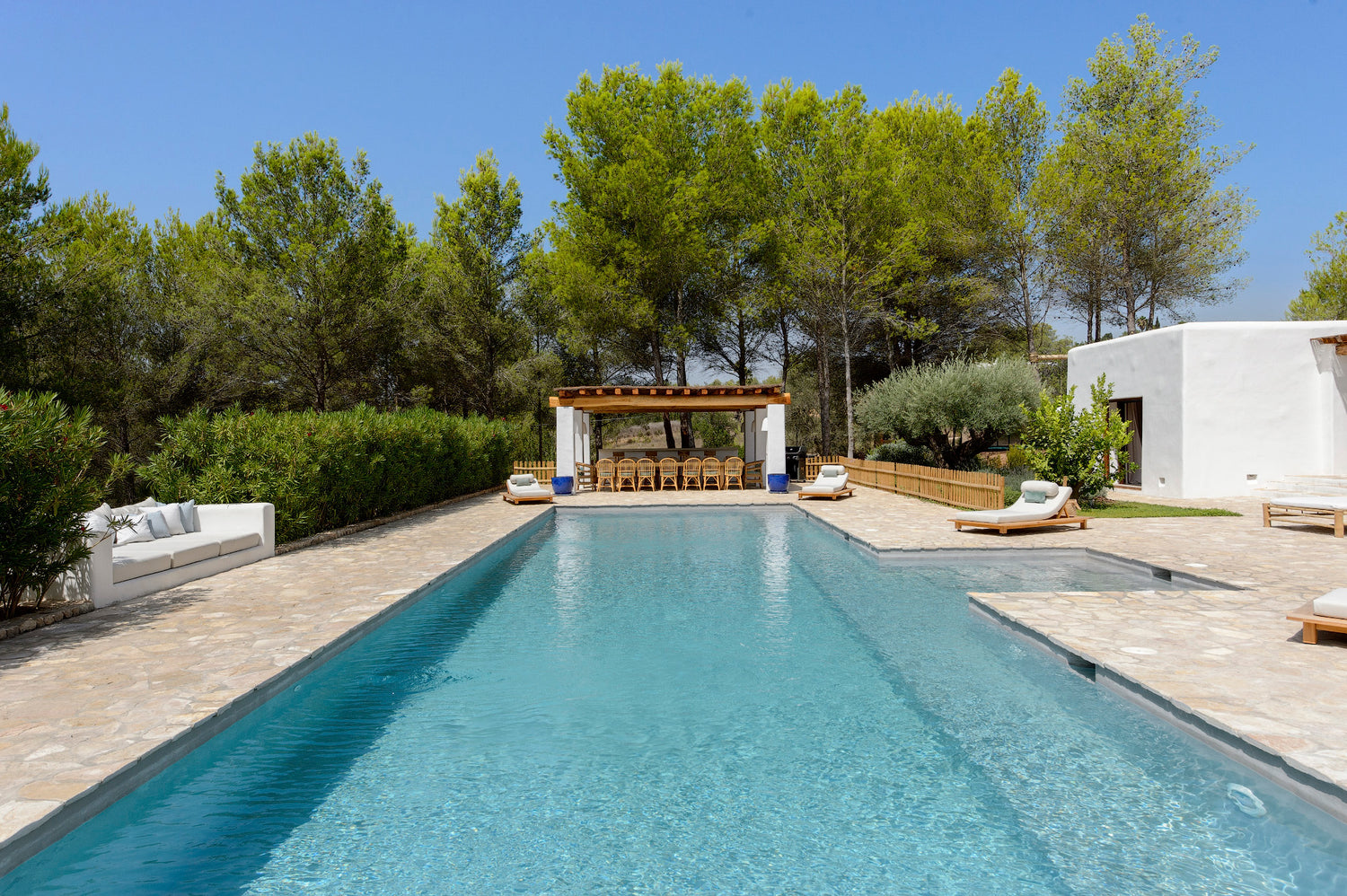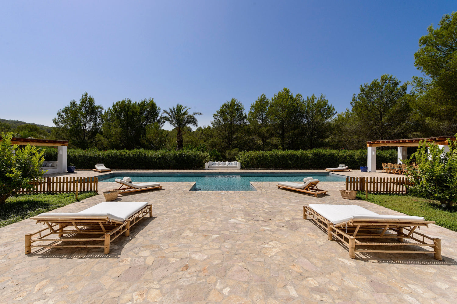Enchanting villa that reflects Ibiza’s natural beauty, with gardens, large pool and a playground under the trees, in a peaceful location in the heart of the island.