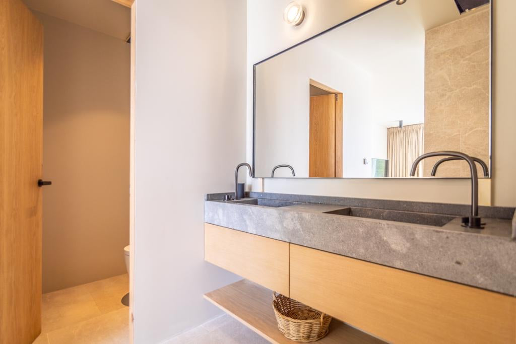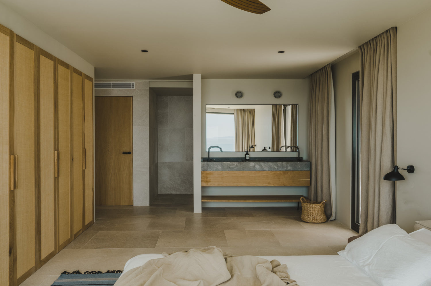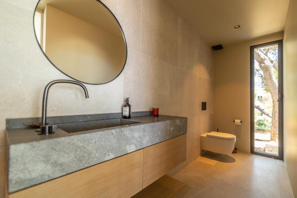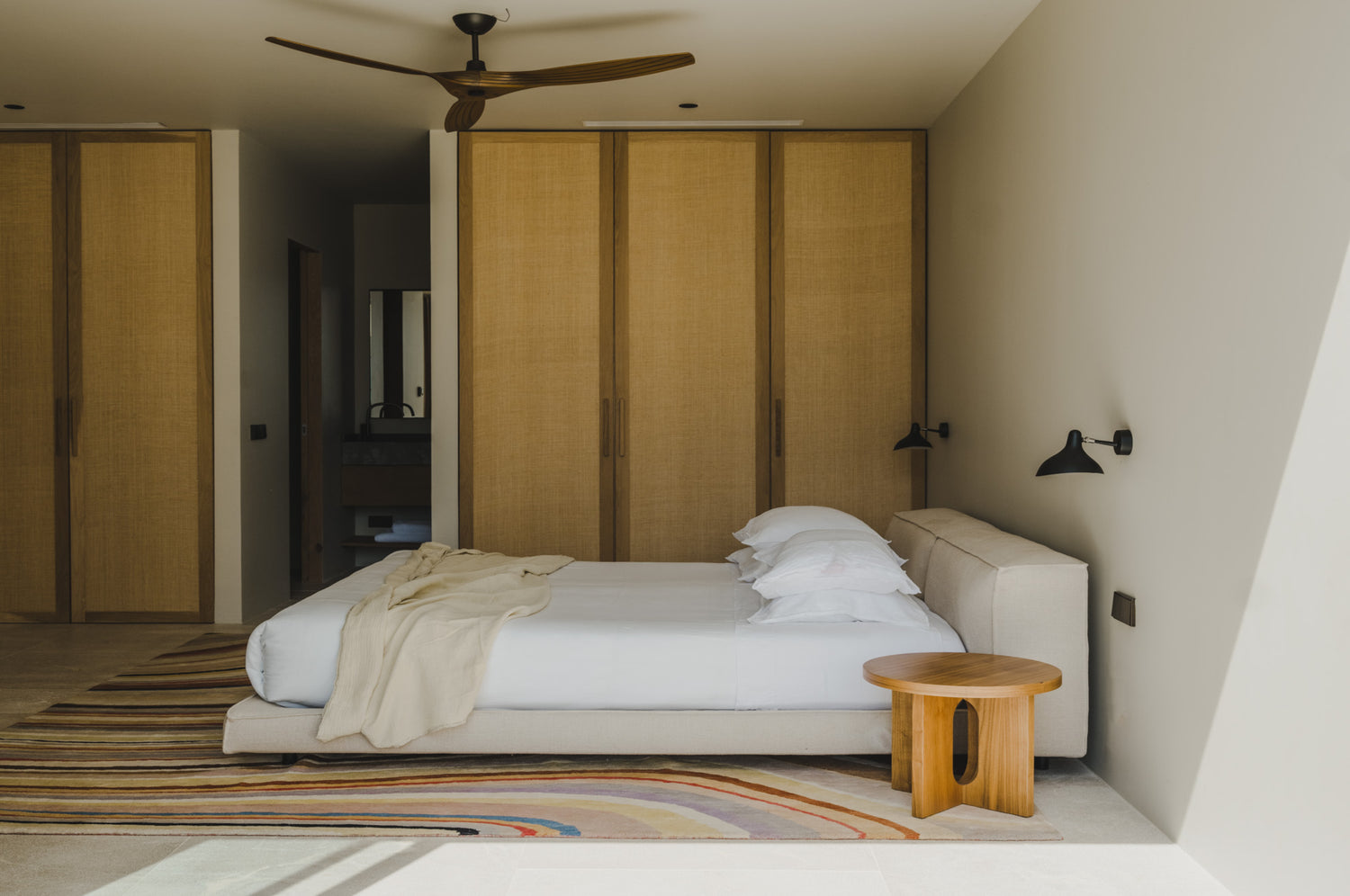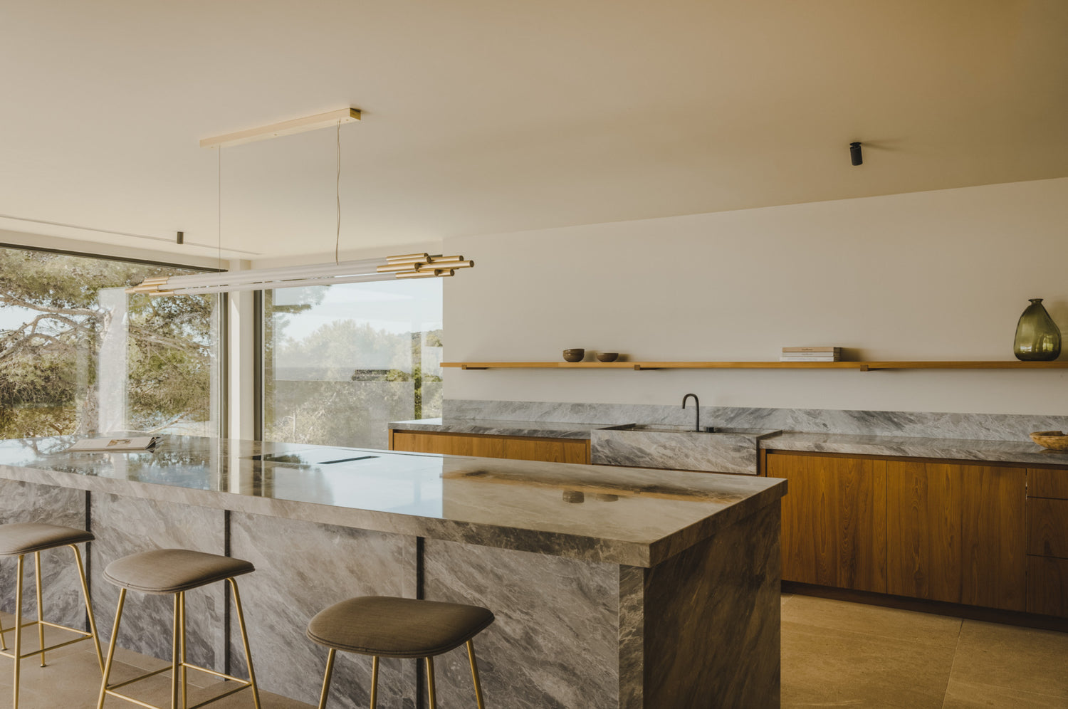 The view of the sea is a constant at this gleaming white villa, from every luminous living space and every lovely terrace. Vast panes of glass slide to create a flow between inside and out. The use of natural materials, the colours of driftwood and some vibrant artwork and boho fabrics create a relaxing island living vibe and yet this this is also a sophisticated kind of beach house. The six bedrooms are all ensuite, everywhere is cooled by Bluetooth controlled air-conditioning and there are Sonos systems inside and out. The sleek kitchen has state-of-the-art appliances and spills out onto the terrace through more sliding windows to a long table for alfresco dining under the stars. As well as the terraces and the deck with the 22m long pool, there are gardens fragrant with pine trees and herbs. It is set in the exclusive community of Roca Lisa where 24-hour security ensures peace and privacy.