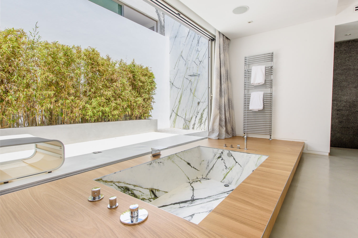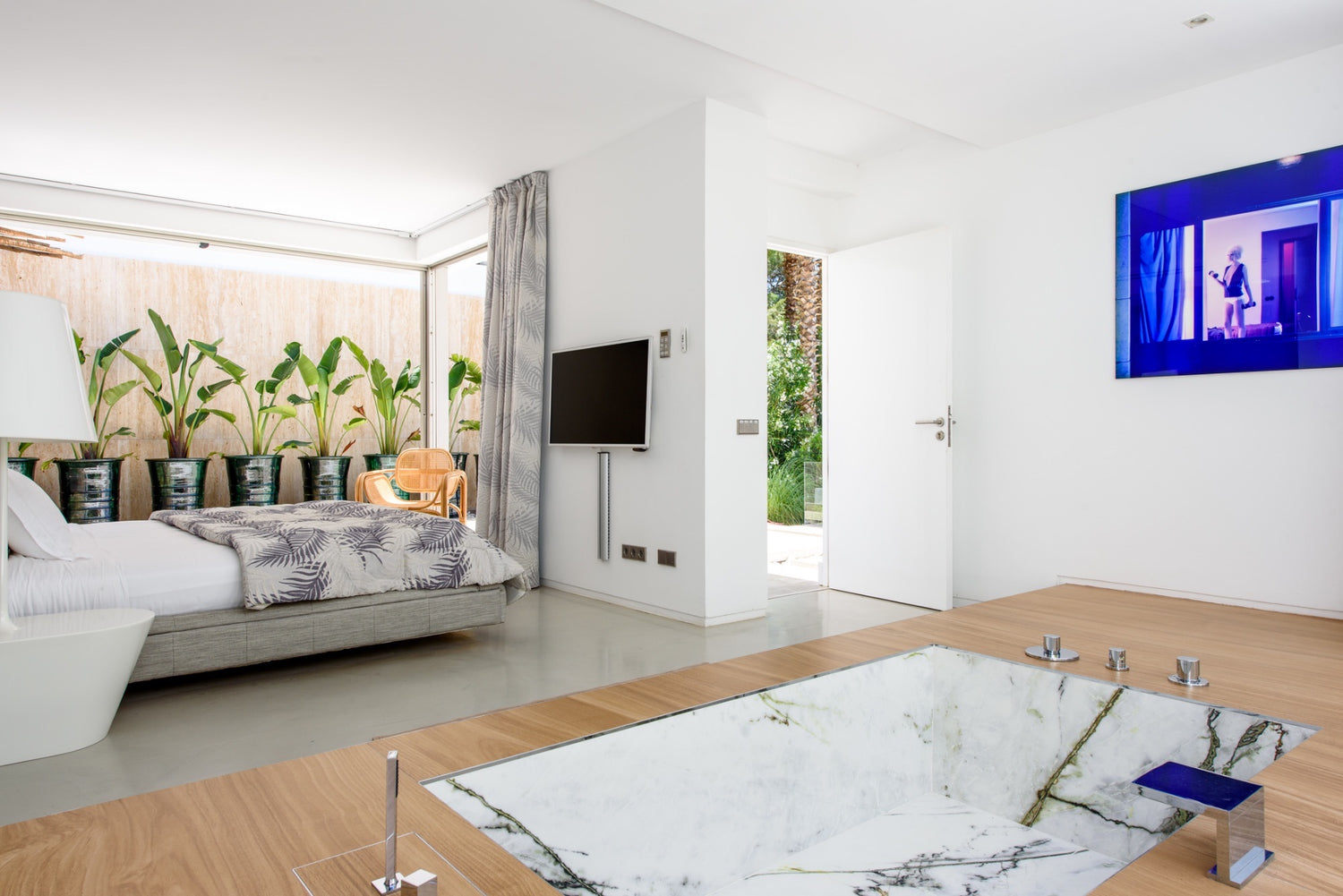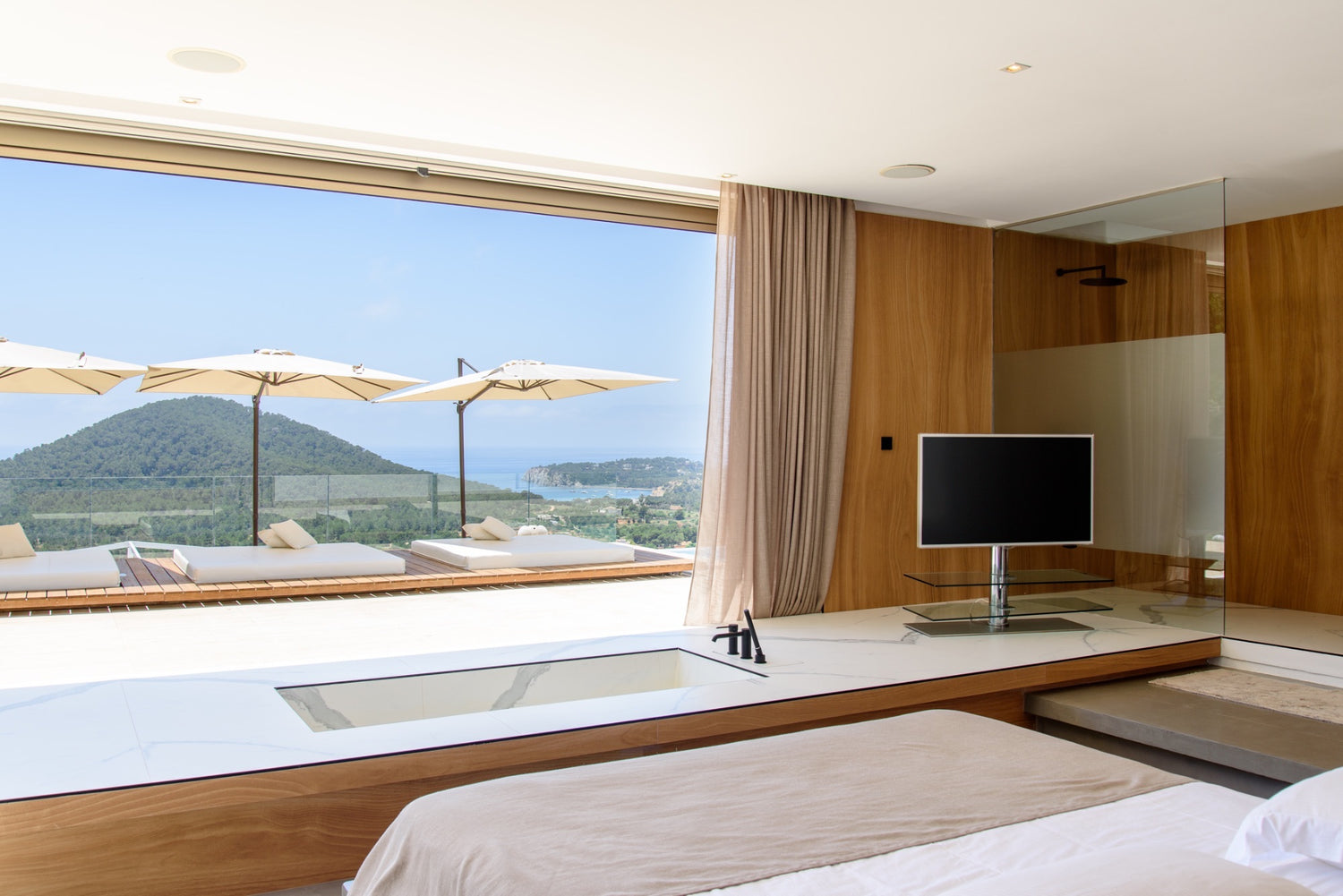 Can Condor nestles into the hillside, its discrete profile belying the fabulous experience within its secure domain. Exclusive and private, there are three ensuite bedrooms but they are all seriously opulent and open onto terraces. There is plenty of space and a professional standard kitchen from which to entertain lavishly, tunes to reflect the vibe of your party wafting through the house from the Sonos system. Interior and exterior blend, apparently seamlessly, across the open plan living area with its beautiful furniture curated to create an ambiance of sophisticated cool. The views from the terrace reach past the resplendently long swimming pool to the pretty bays of Ibiza’s southern coast. Gardens spill over lawns to hidden nooks with funky chill-out zones. Night-time lighting turns it into an enchanted paradise. A recreation room with cinema, unique billiard table and state-of-the-art gym equipment ensures that every moment of your Ibiza experience is sensational.