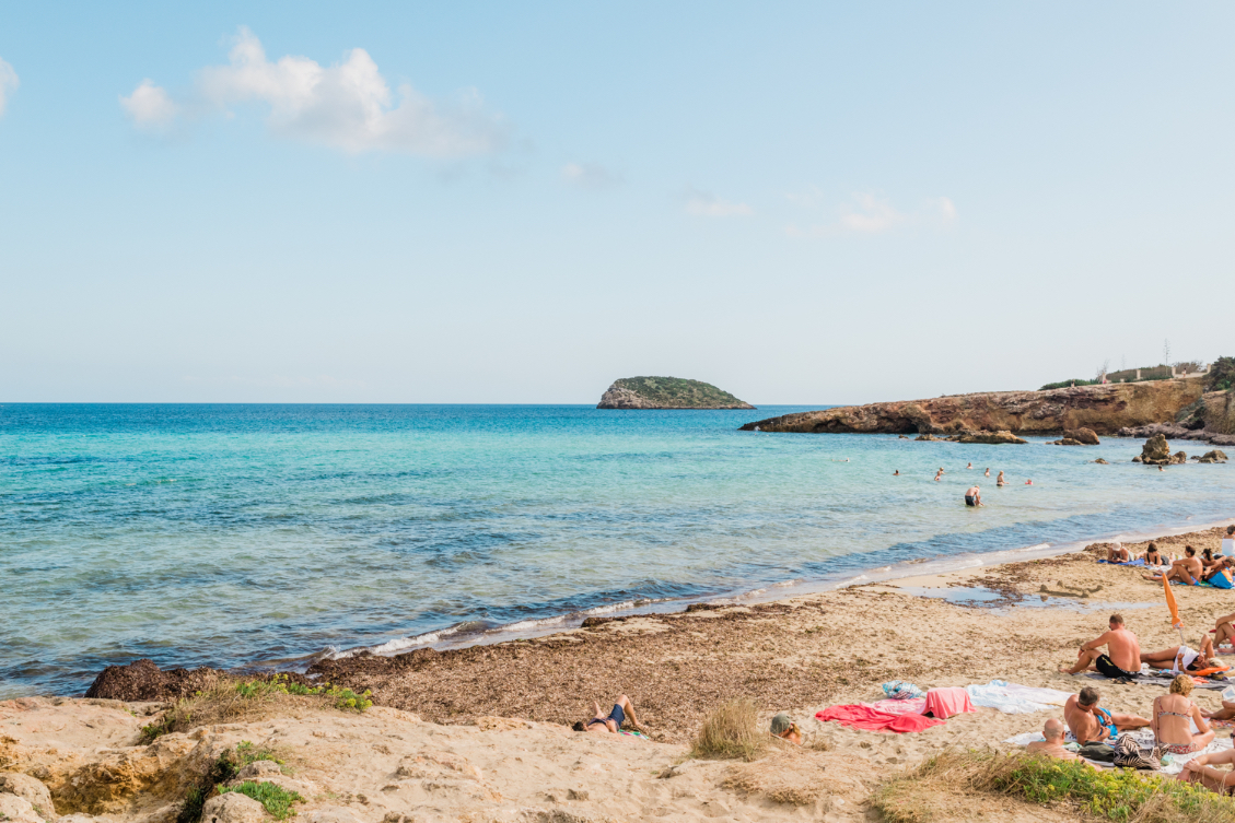 One of the only beaches in Ibiza that can actually lay claim to providing conditions good enough to surf, the dramatic backdrop of Cala Nova is unspoilt and rustic with a long arc of dark golden sand surrounded by rocky red cliffs and pine-clad hills.