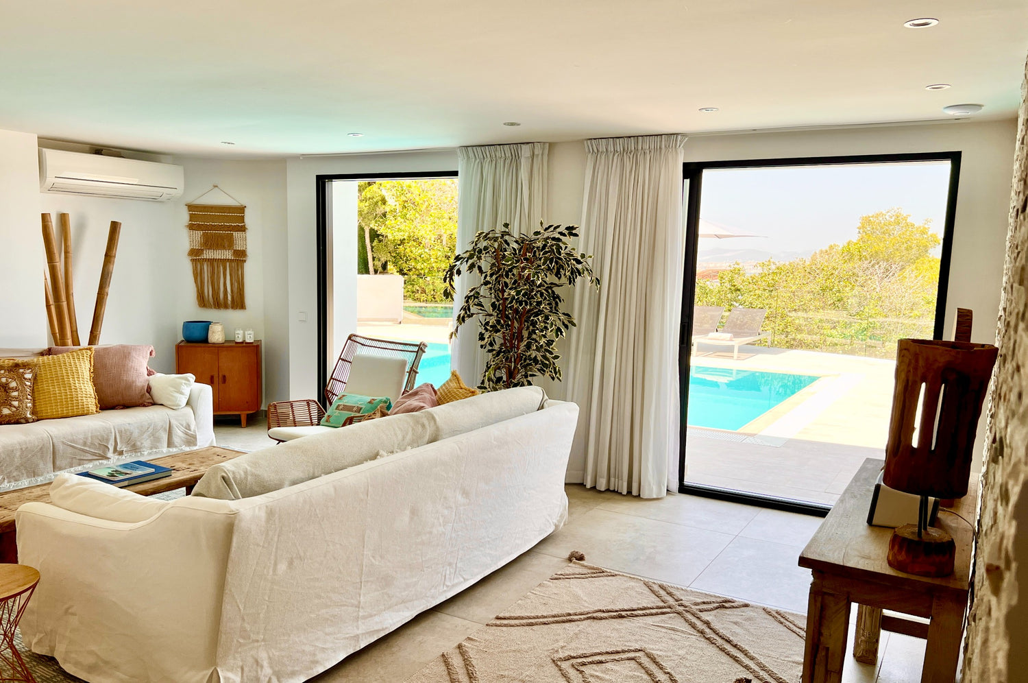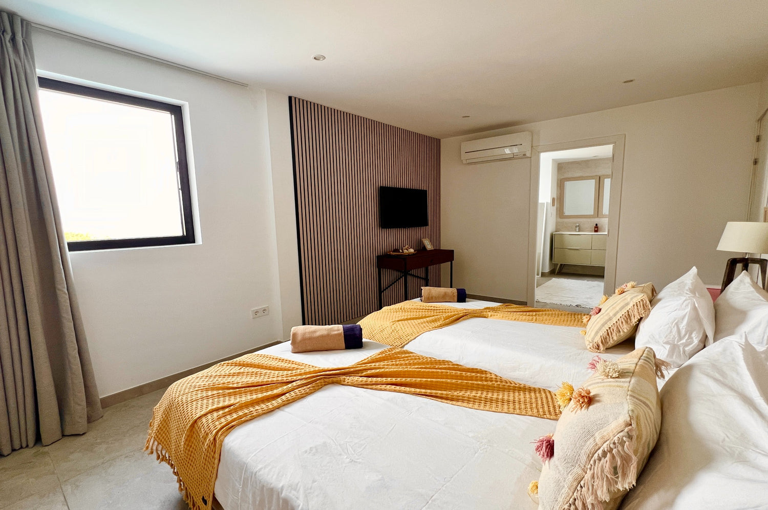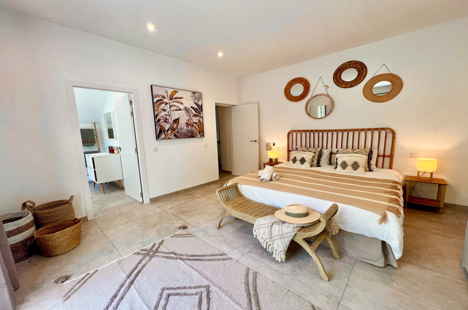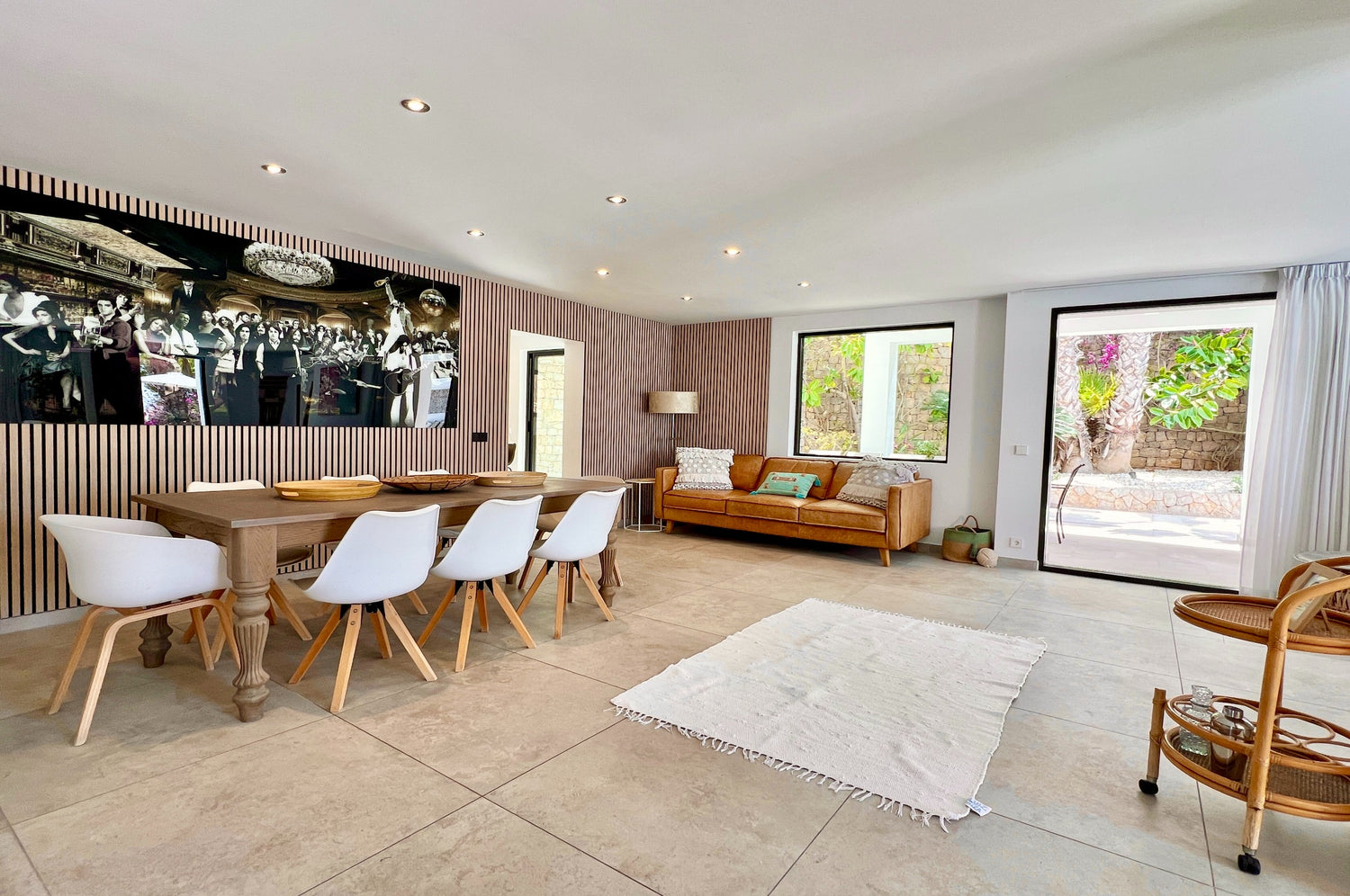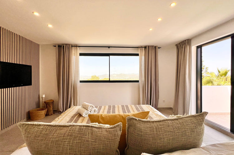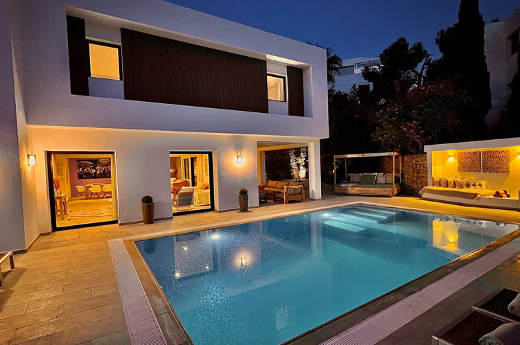 Nestled in Ibiza's exclusive area and renovated in 2024, this luxurious villa offers serene surroundings near Pacha and the beach. Guests can enjoy stunning sunsets from the expansive terrace and al fresco dining area with a large BBQ. The property features a private pool, petanque court, and indoor comforts including a spacious lounge, dining room opening to the terrace, a cozy TV room with a 55” smart TV, and a fireplace. A fully equipped kitchen and laundry facilities ensure convenience, while amenities like AC, fast WiFi, and IPTV enhance comfort. Each bedroom suite includes AC and smart TVs, with the master suite boasting a private terrace overlooking Ibiza Town. Perfectly blending relaxation and proximity to nightlife, this villa promises an unforgettable retreat.