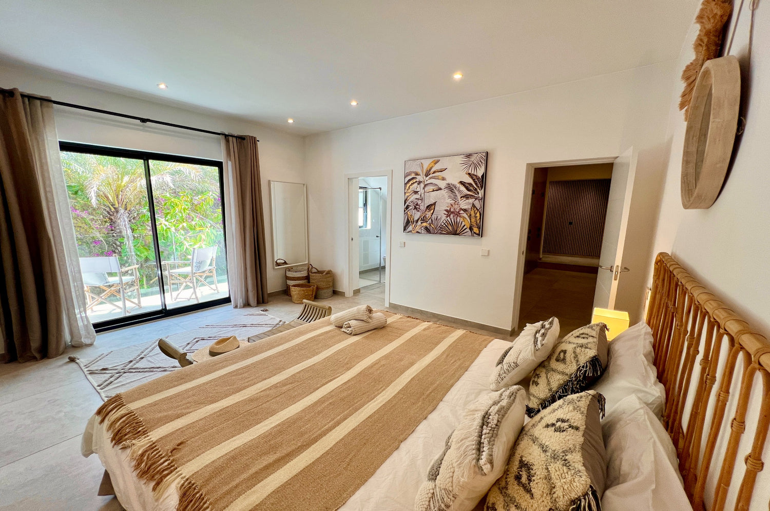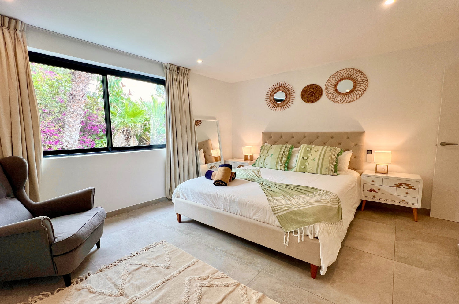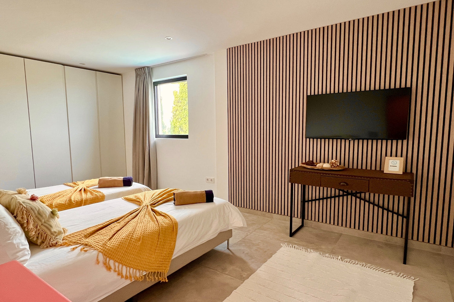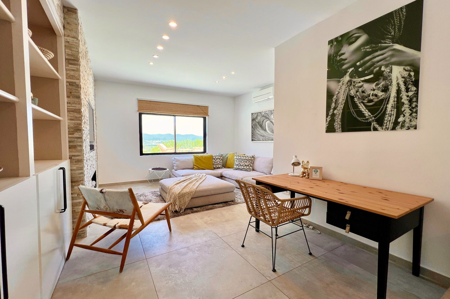 Nestled in Ibiza's exclusive area and renovated in 2024, this luxurious villa offers serene surroundings near Pacha and the beach. Guests can enjoy stunning sunsets from the expansive terrace and al fresco dining area with a large BBQ. The property features a private pool, petanque court, and indoor comforts including a spacious lounge, dining room opening to the terrace, a cozy TV room with a 55” smart TV, and a fireplace. A fully equipped kitchen and laundry facilities ensure convenience, while amenities like AC, fast WiFi, and IPTV enhance comfort. Each bedroom suite includes AC and smart TVs, with the master suite boasting a private terrace overlooking Ibiza Town. Perfectly blending relaxation and proximity to nightlife, this villa promises an unforgettable retreat.