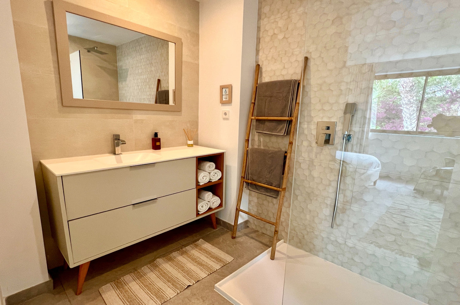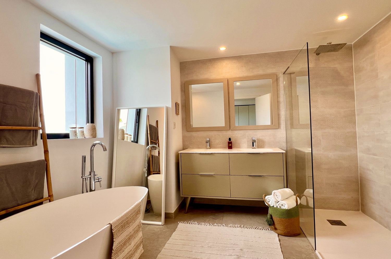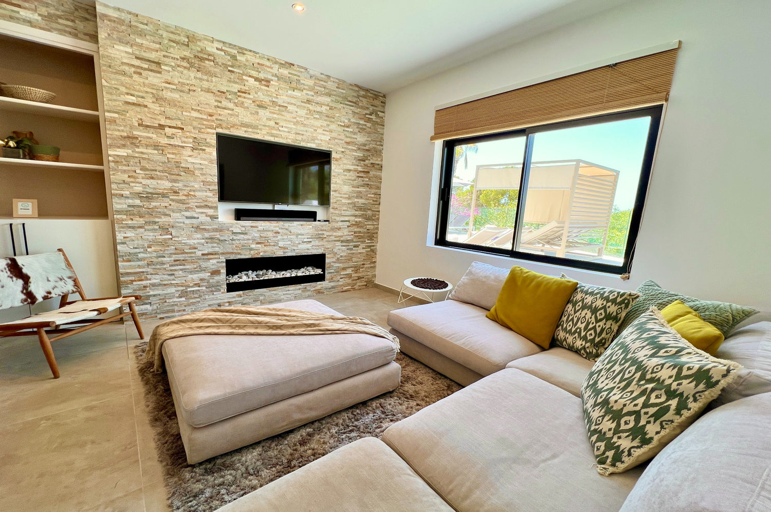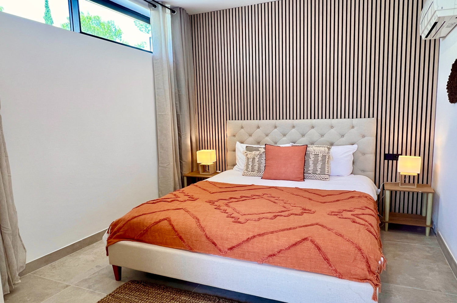 Nestled in Ibiza's exclusive area and renovated in 2024, this luxurious villa offers serene surroundings near Pacha and the beach. Guests can enjoy stunning sunsets from the expansive terrace and al fresco dining area with a large BBQ. The property features a private pool, petanque court, and indoor comforts including a spacious lounge, dining room opening to the terrace, a cozy TV room with a 55” smart TV, and a fireplace. A fully equipped kitchen and laundry facilities ensure convenience, while amenities like AC, fast WiFi, and IPTV enhance comfort. Each bedroom suite includes AC and smart TVs, with the master suite boasting a private terrace overlooking Ibiza Town. Perfectly blending relaxation and proximity to nightlife, this villa promises an unforgettable retreat.