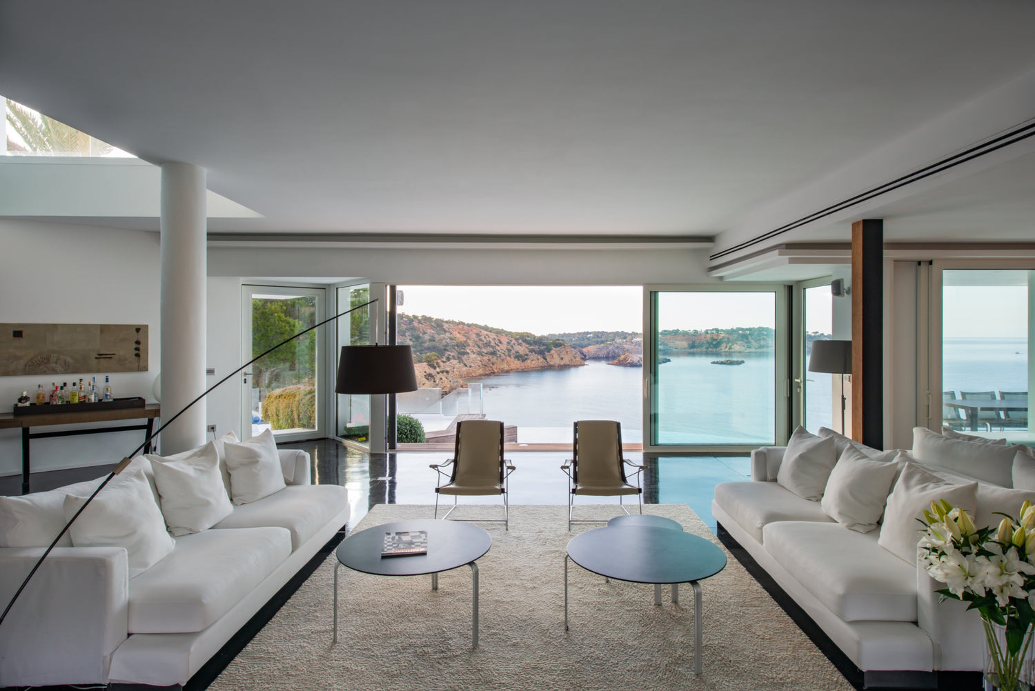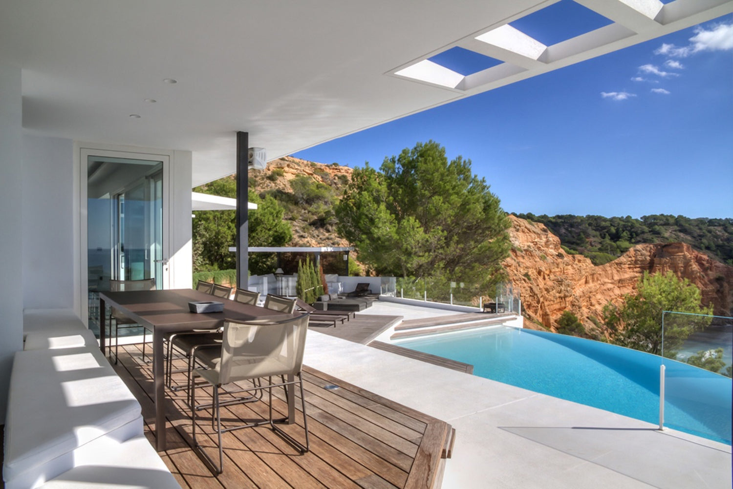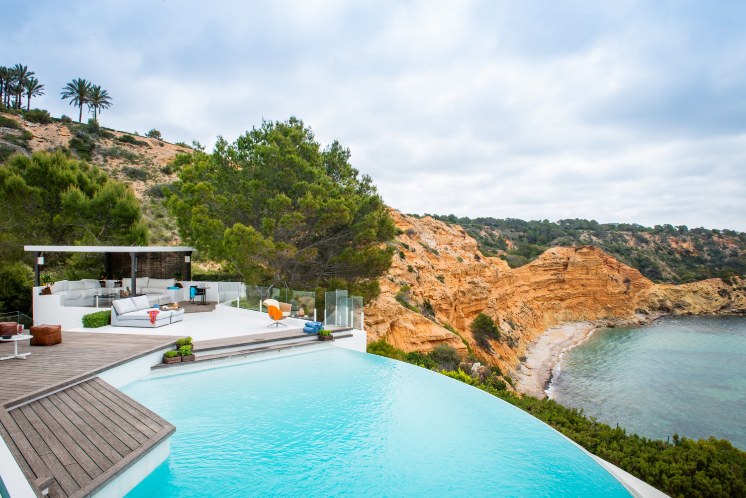 This would count, for many, as the ultimate in villas. The views are sublime, the accommodation is luxurious, there are steps to a pebble beach otherwise accessible by boat. With its stunning architecture hugging the cliff that looks towards the Porroig Peninsula and Formentera beyond, this villa offers exclusivity with the sense of freedom that comes from proximity to the sea. Multiple terraces make the most of this spectacular location, with elegant alfresco dining, chill-out zones and an infinity pool that sems to cascade over the cliff-side. Interiors are luminous without sacrificing comfort and well-equipped with technology. Six bedrooms all have lavish ensuites, most with sea or garden views and some with private terraces. Live-in staff and a range of services ensure a fabulous stay. Vista Alegre is a gated community with 24-hour security and with easy access to the beaches and iconic restaurants and clubs of Ibiza’s southern coast.