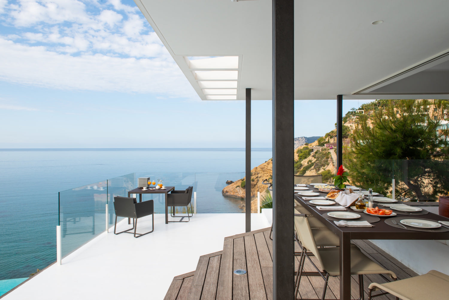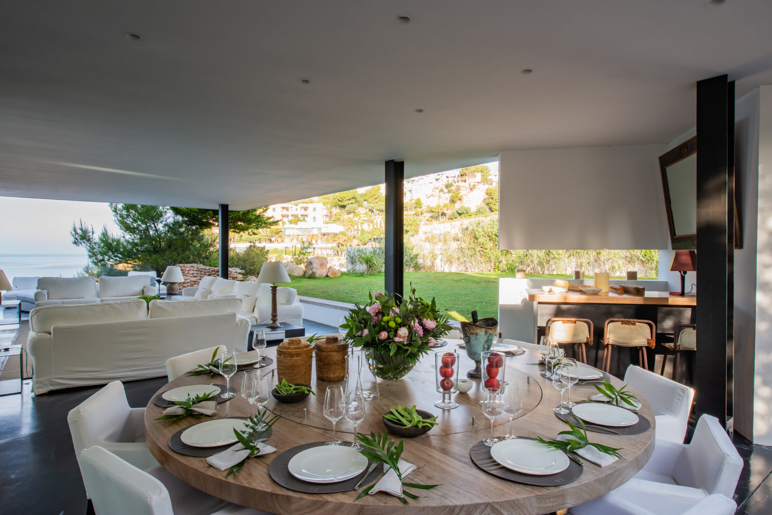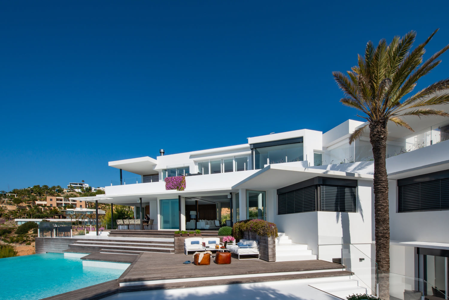 This would count, for many, as the ultimate in villas. The views are sublime, the accommodation is luxurious, there are steps to a pebble beach otherwise accessible by boat. With its stunning architecture hugging the cliff that looks towards the Porroig Peninsula and Formentera beyond, this villa offers exclusivity with the sense of freedom that comes from proximity to the sea. Multiple terraces make the most of this spectacular location, with elegant alfresco dining, chill-out zones and an infinity pool that sems to cascade over the cliff-side. Interiors are luminous without sacrificing comfort and well-equipped with technology. Six bedrooms all have lavish ensuites, most with sea or garden views and some with private terraces. Live-in staff and a range of services ensure a fabulous stay. Vista Alegre is a gated community with 24-hour security and with easy access to the beaches and iconic restaurants and clubs of Ibiza’s southern coast.