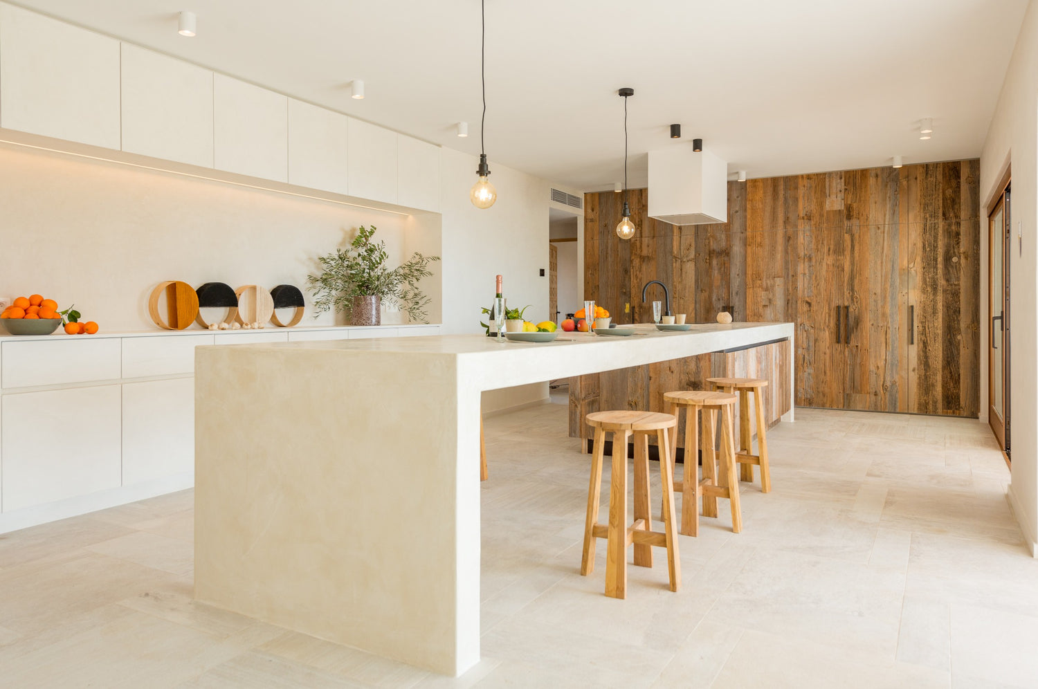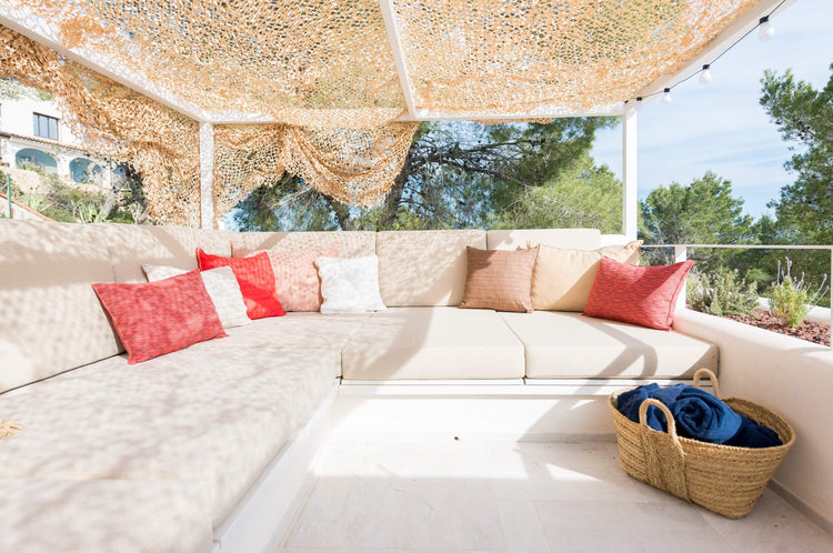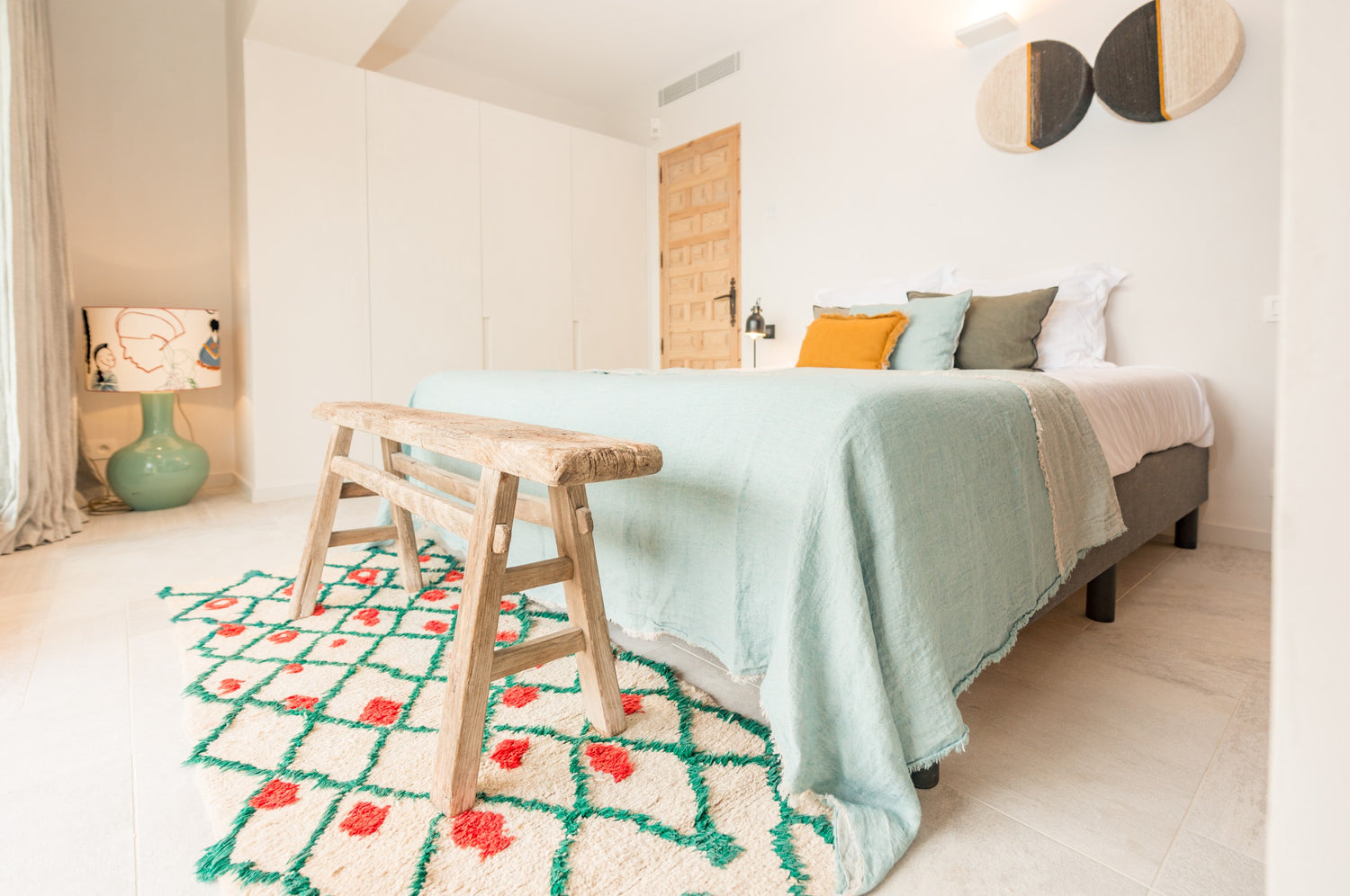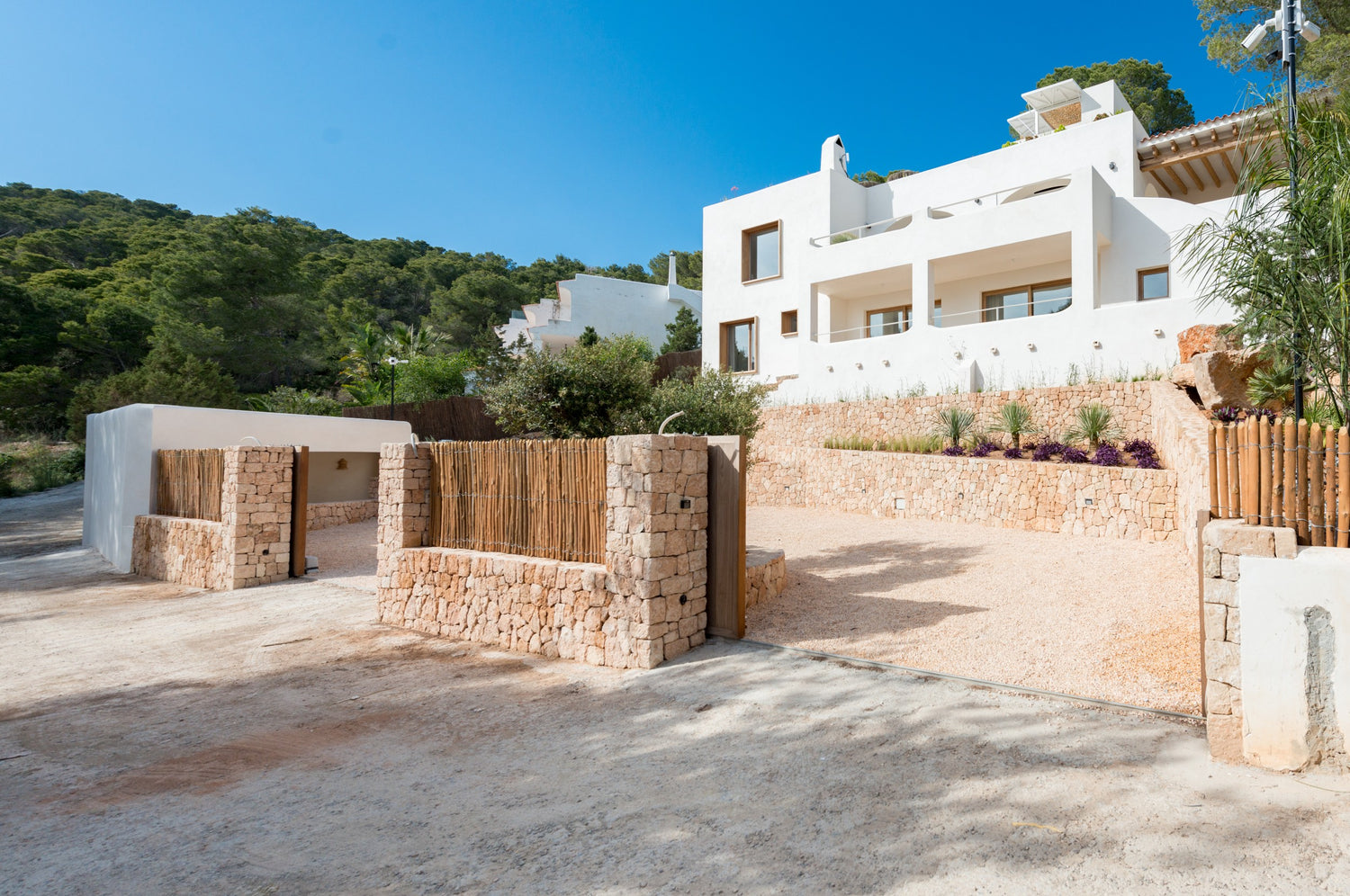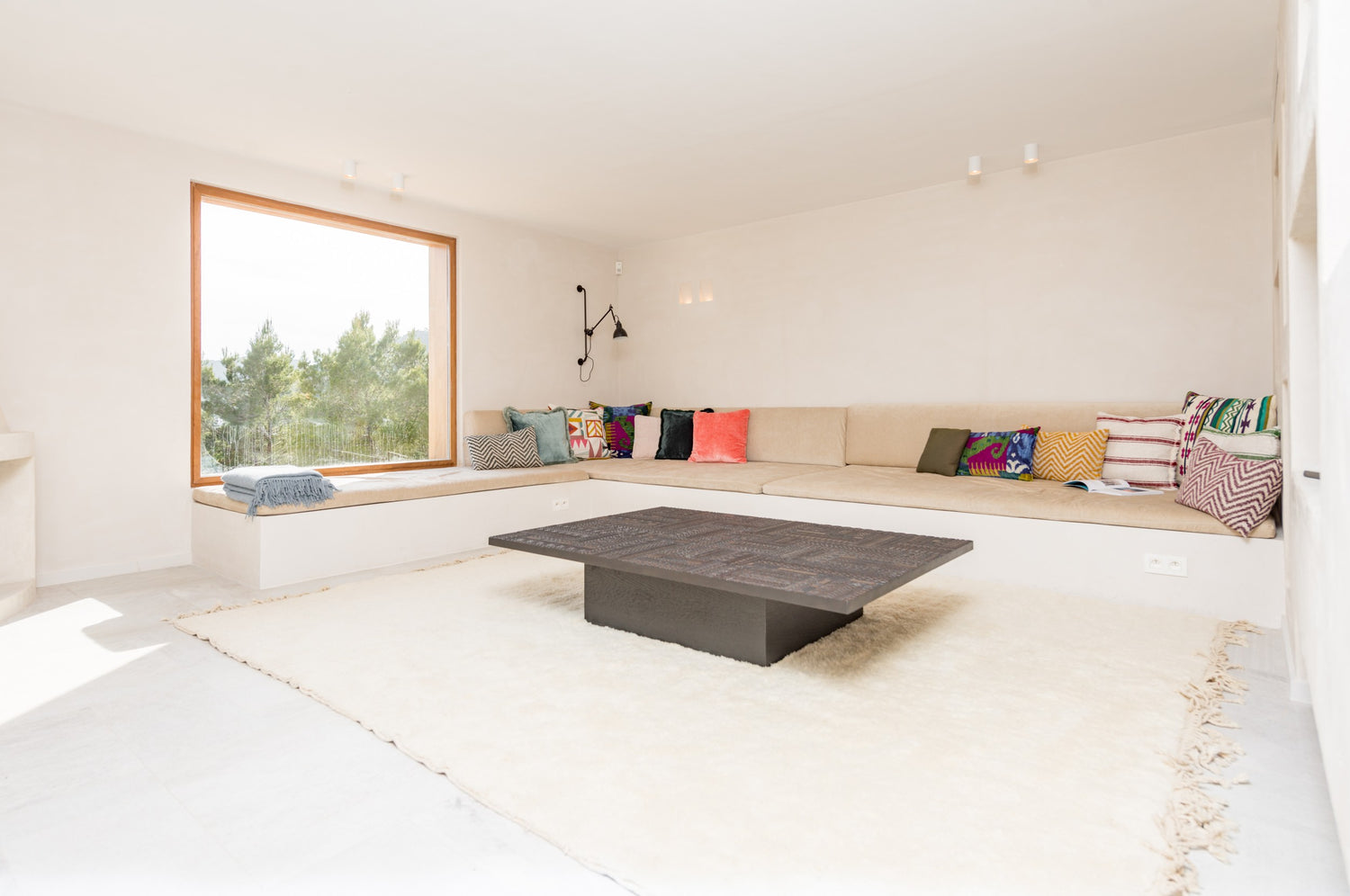 Can Turó is more than a holiday villa – it is a lifestyle. Soak up the Ibiza vibe where boho gets sophisticated, sweet tunes play under pine trees and stress is carried off by a sea breeze. You are close to Blue Marlin but here you have a roof-top paradise where chiringuito meets private beach club. It is hard to leave. Ever. The villa is built into the hillside so its garden of Eden roof has shade for dining and chill-out, sunbathing round the pool, an outside kitchen and a bar. Higher up the wooded slope a yoga platform and exercise deck are cool in the shade. Interiors are contemporary with a beach-side twist and include a vast well-equipped kitchen that opens onto large terrace for dining and lounging. It faces the sunset. The main entrance is on the lowest level, where there is ample parking behind the gates to this piece of Ibiza heaven.
