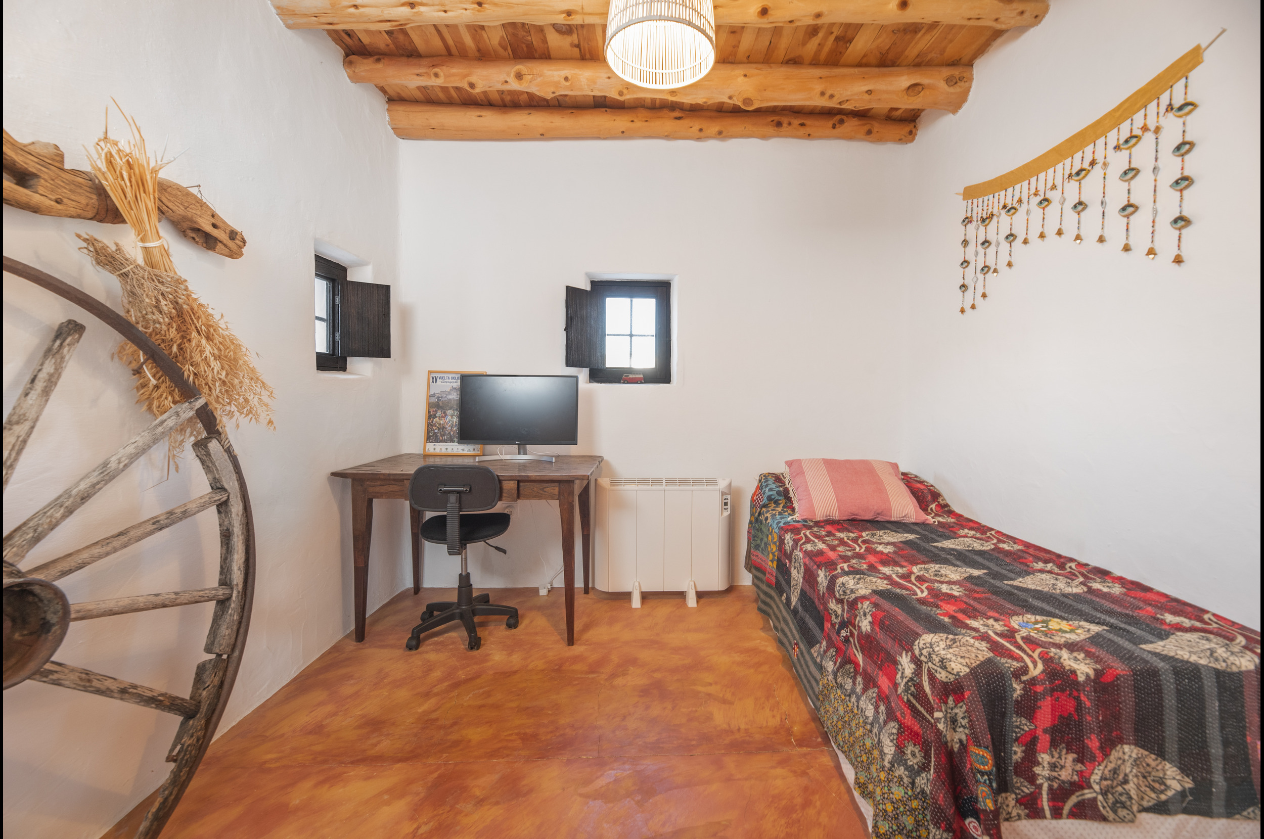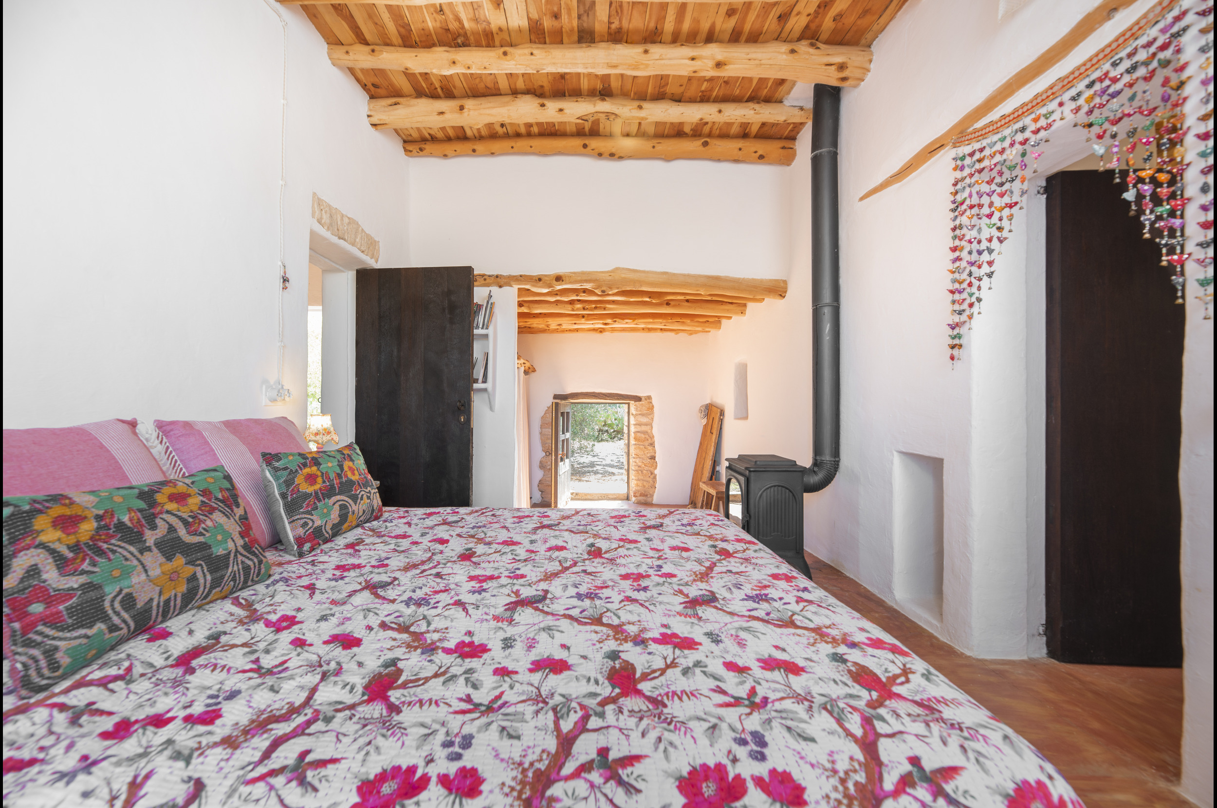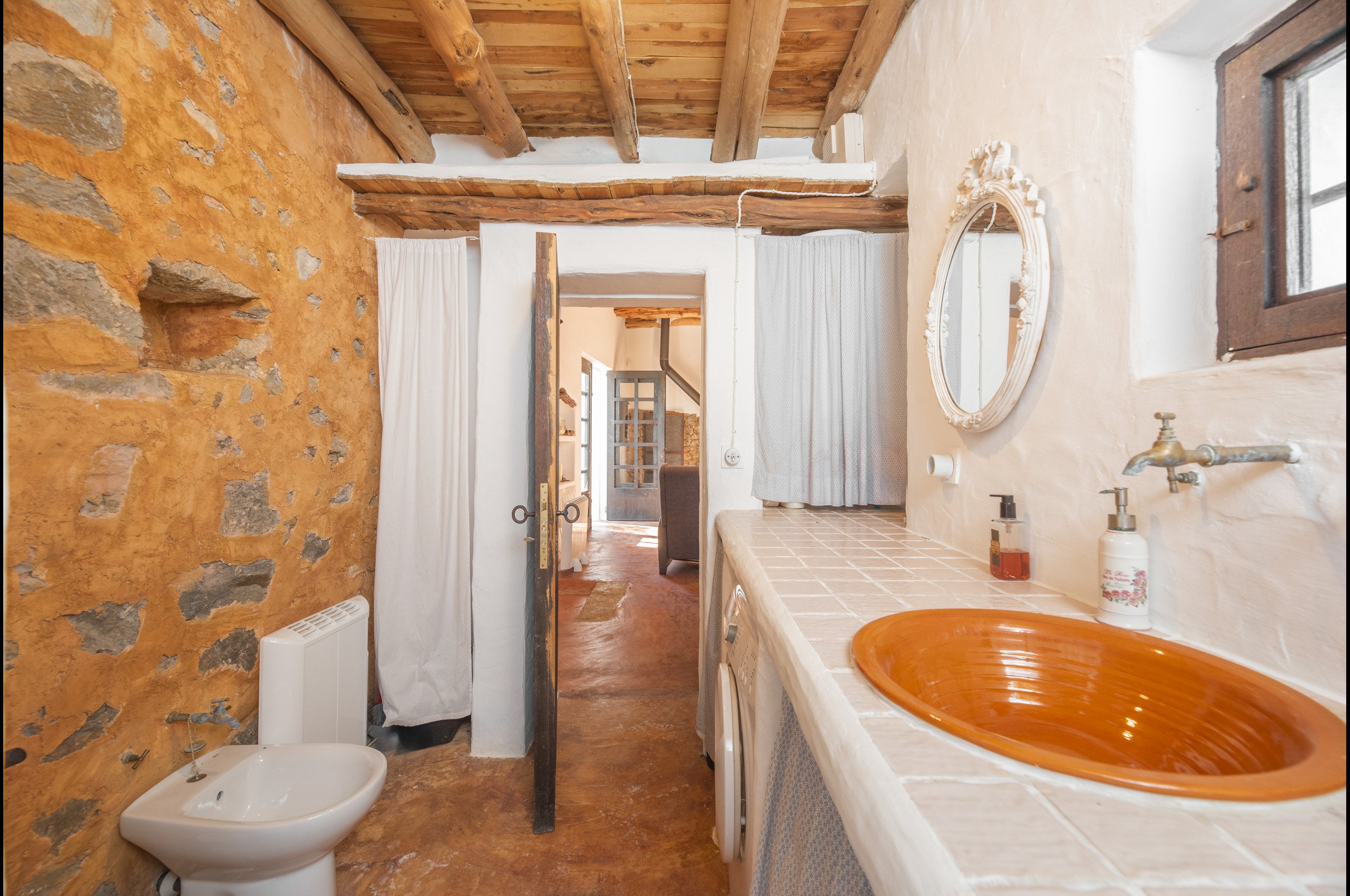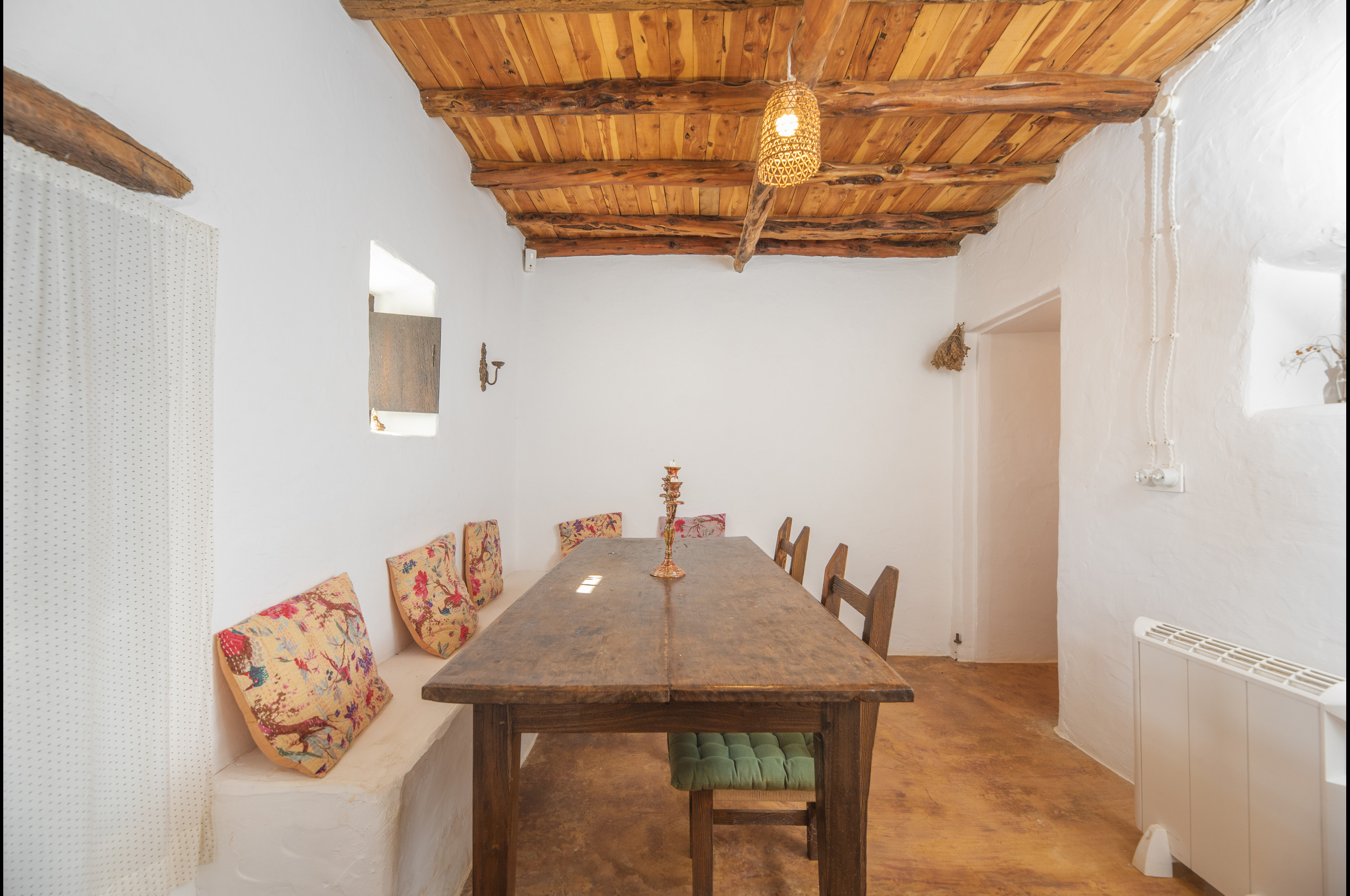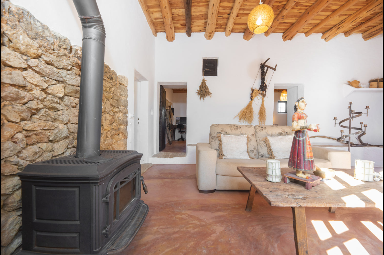 An enviable opportunity to connect to the Ibiza of times gone by, this rural property was modernised with due consideration for its heritage. It has gently adapted to modern life while treading lightly. Original features – rough plastered walls, ancient beams – are preserved; the 9.312m2 plot is scattered with olive and citrus trees; even the swimming pool surrounded by local stone and the charming outside kitchen area blend with the landscape. The layout is traditional on one floor with dining and seating areas and a kitchen wending around a pretty interior with three bedrooms giving off and plenty of doors to outside. A fourth bedroom occupies a casita with a separate entrance. The comforts of the modern world blend respectfully with this characterful home - central heating supplements woodburning stoves and there are three bathrooms. A short drive to the enchanting village of Santa Agnes, this property is special.