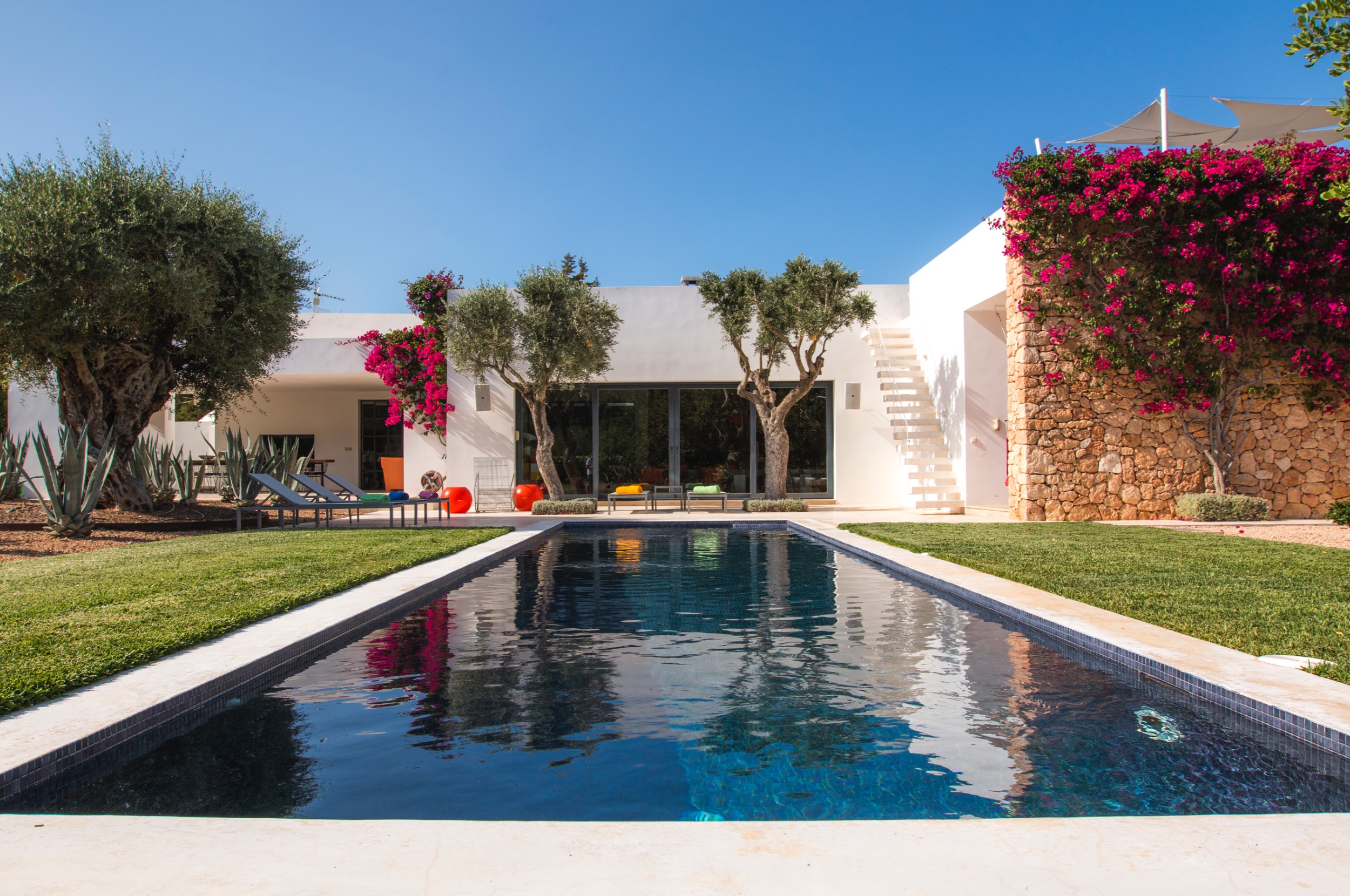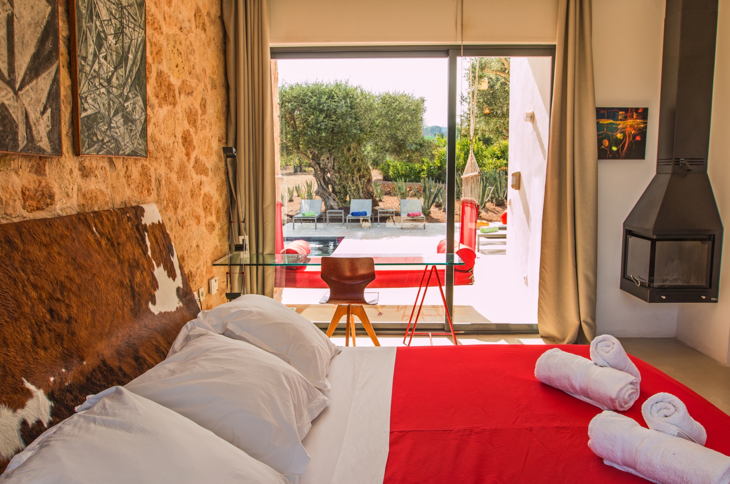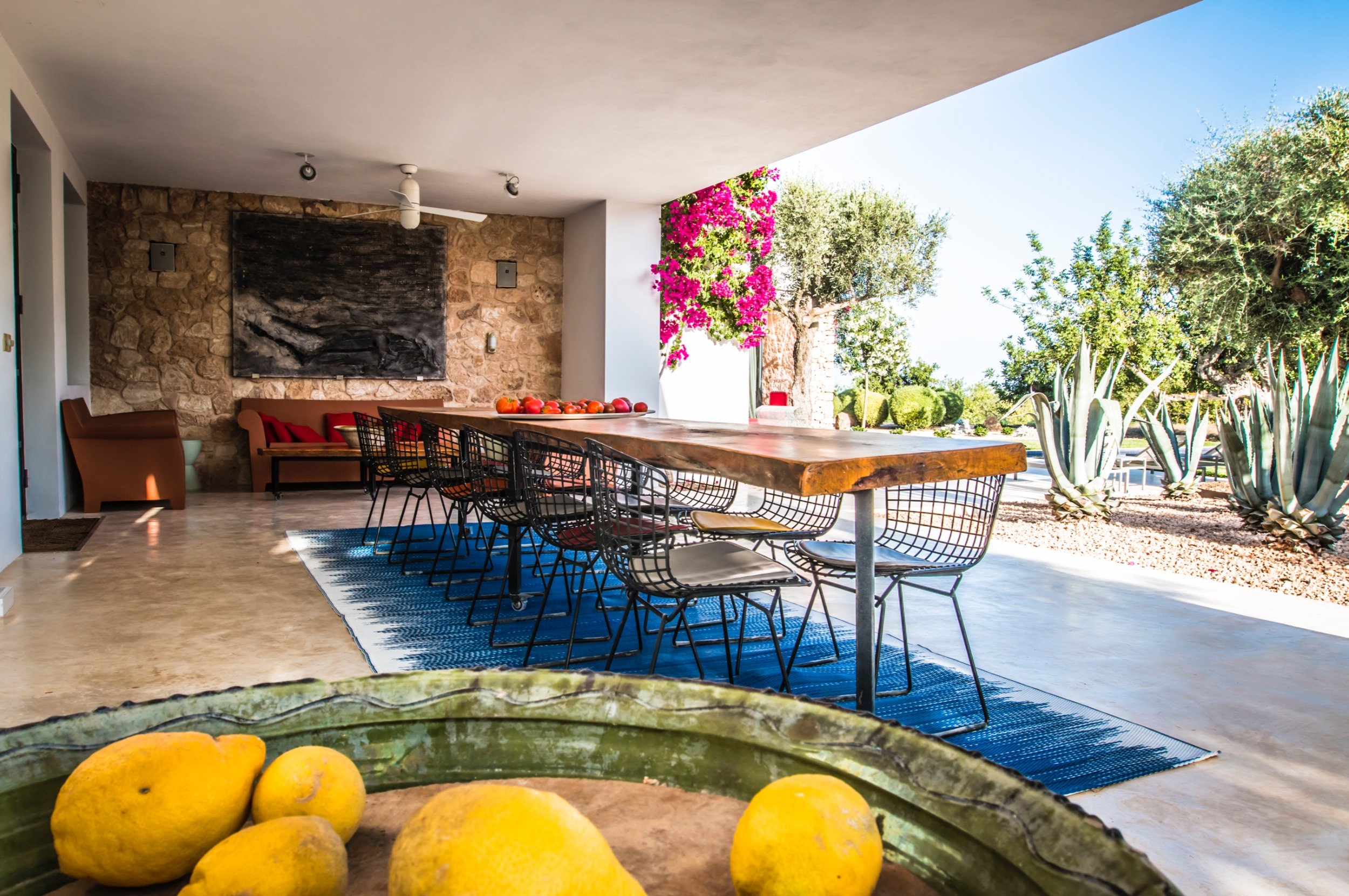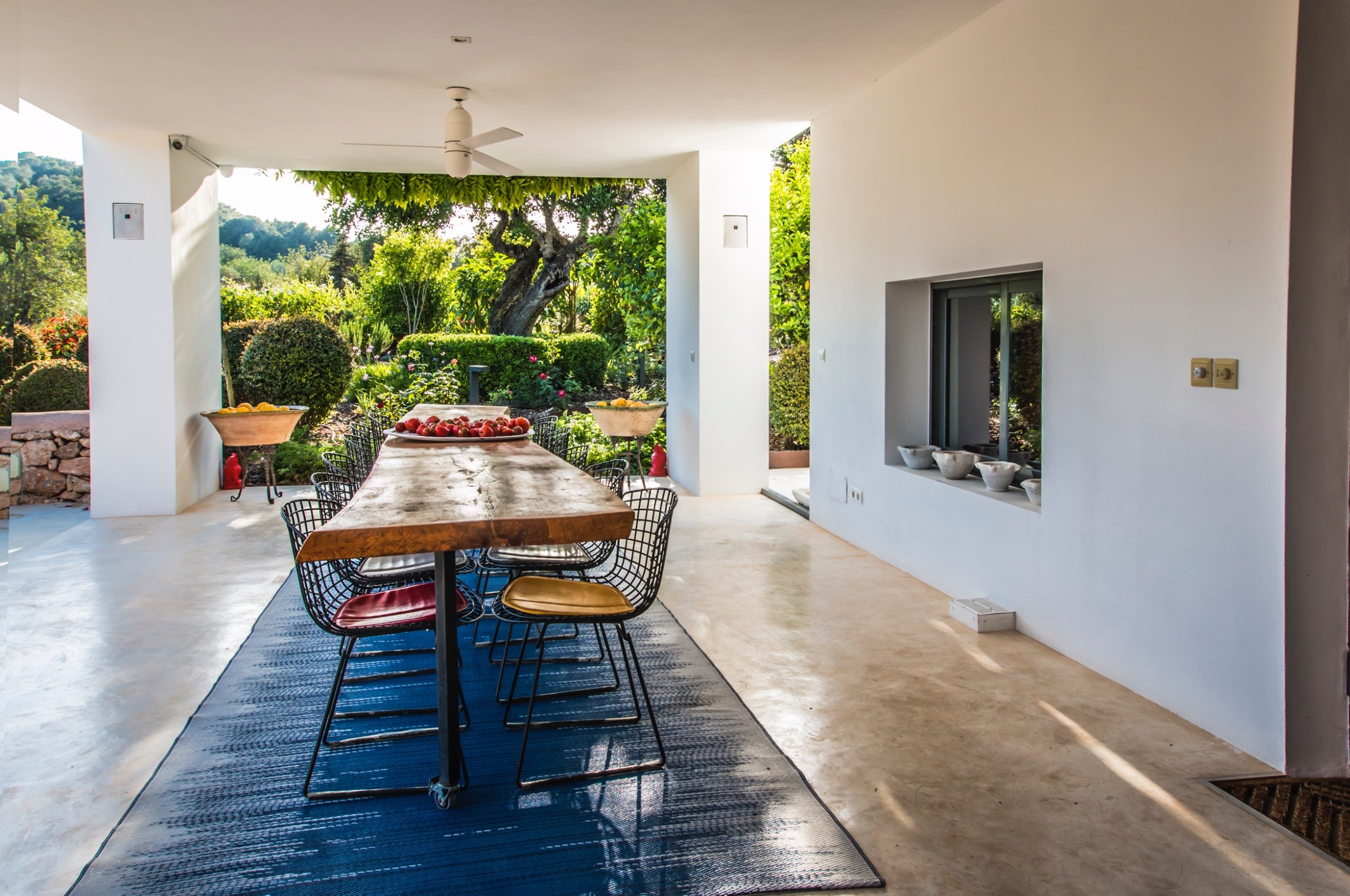 Set in countryside near the village of San Rafael, this villa is a private oasis from which to enjoy Ibiza. It combines cosmopolitan with traditional while remaining both elegant and cosy. There are 360m2 of light, bright living space, flowing from a large living room, inside and outside dining areas, kitchen and mezzanine office/library space. Functionality is provided by a utility room, air conditioning for summer months and fireplaces for winter. Three double bedrooms and bathrooms in the main house and another bedroom, bathroom, living room and small kitchen in an annexe, offer ample space to host guests. The house is on a fenced 15,000m2 plot, with pool, manicured gardens, orchard, extensive vegetable garden, greenhouse and covered parking. A roof terrace offers a chillout with views to the sea. This stunning and fantastically placed property holds a tourist license making an investment with great potential as well as a stylish home.