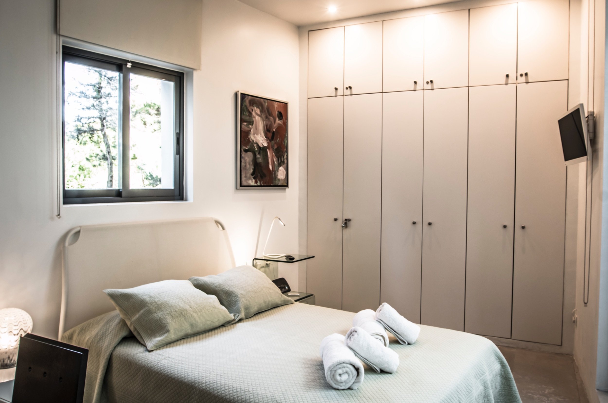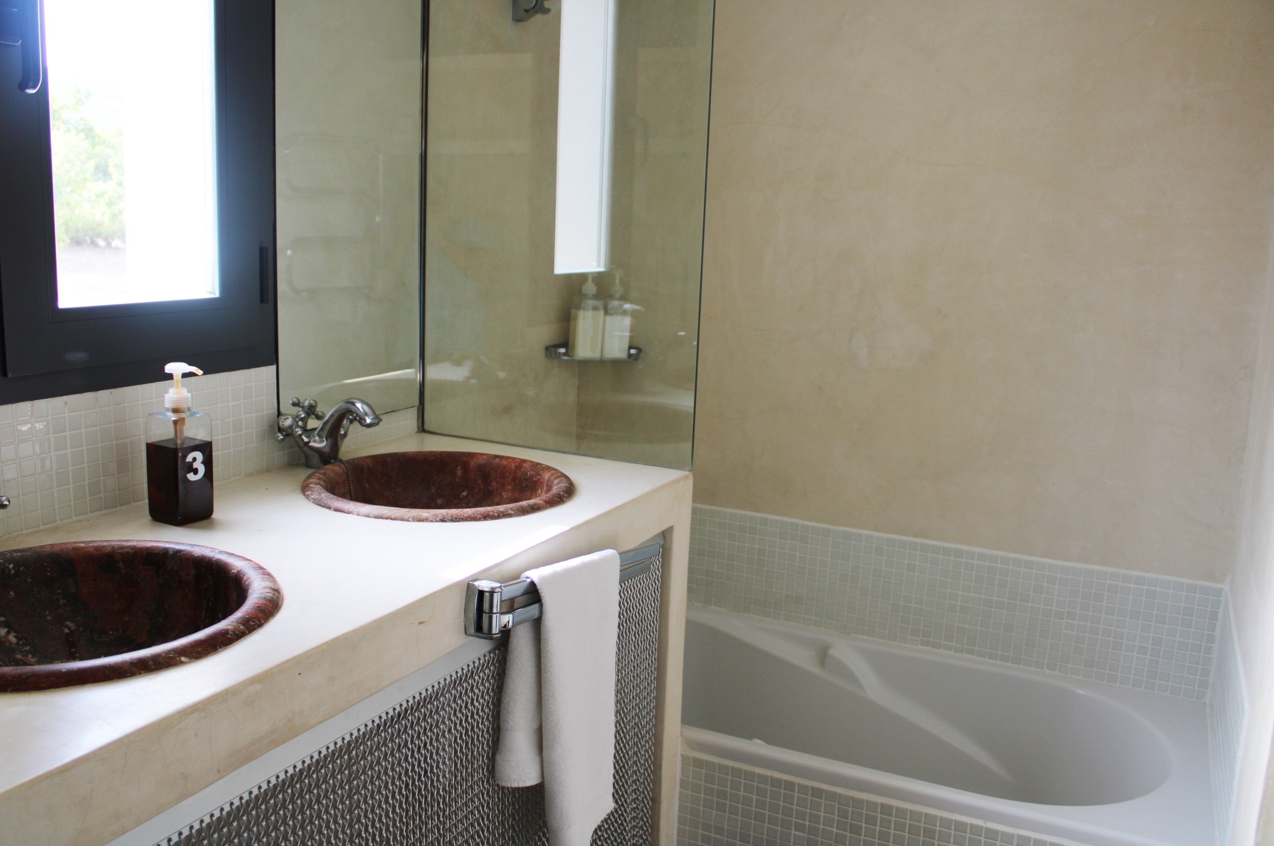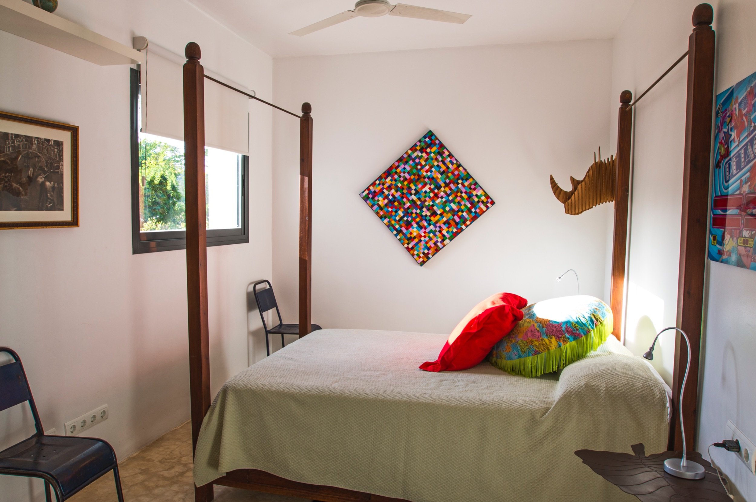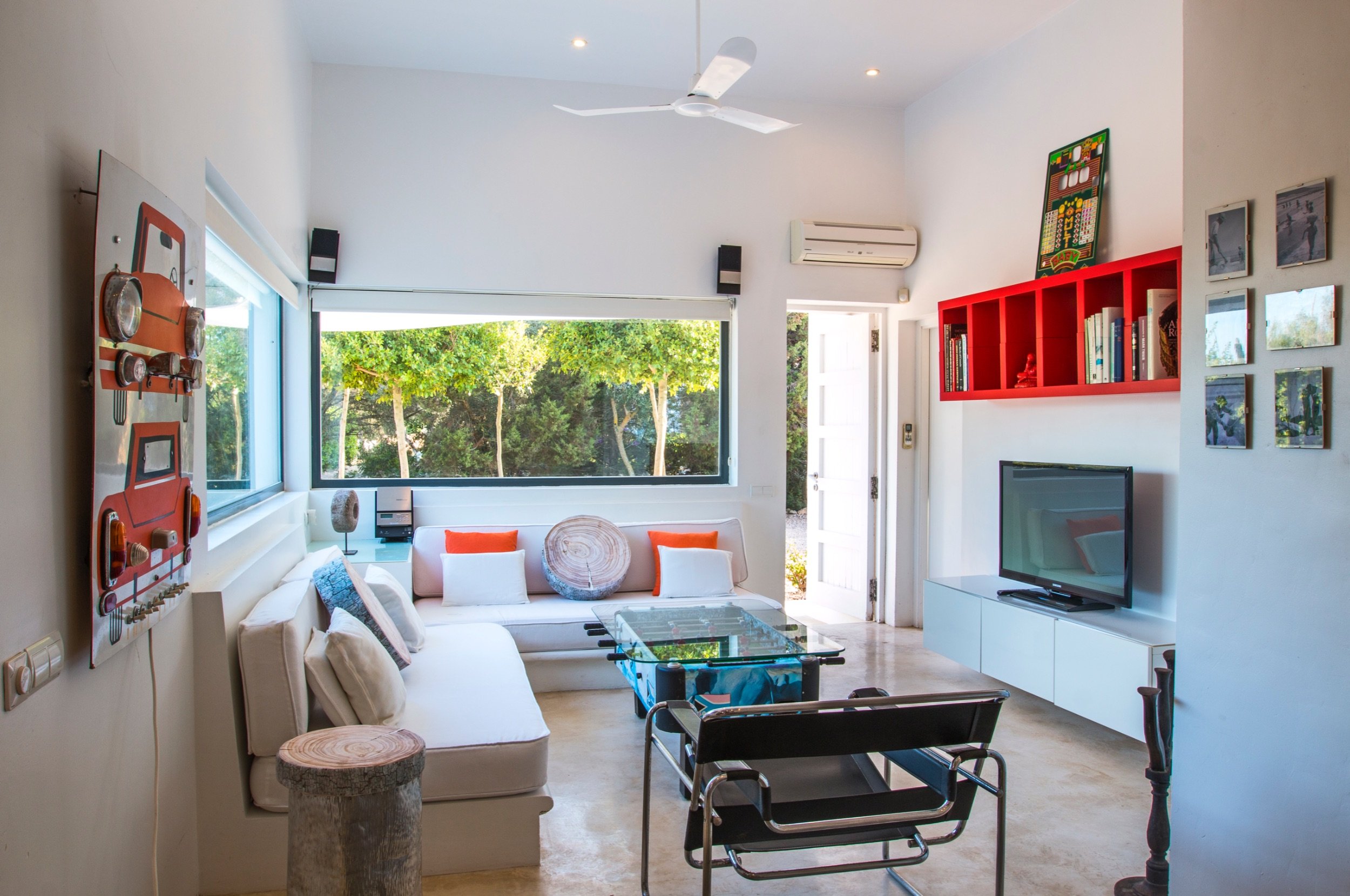 Set in countryside near the village of San Rafael, this villa is a private oasis from which to enjoy Ibiza. It combines cosmopolitan with traditional while remaining both elegant and cosy. There are 360m2 of light, bright living space, flowing from a large living room, inside and outside dining areas, kitchen and mezzanine office/library space. Functionality is provided by a utility room, air conditioning for summer months and fireplaces for winter. Three double bedrooms and bathrooms in the main house and another bedroom, bathroom, living room and small kitchen in an annexe, offer ample space to host guests. The house is on a fenced 15,000m2 plot, with pool, manicured gardens, orchard, extensive vegetable garden, greenhouse and covered parking. A roof terrace offers a chillout with views to the sea. This stunning and fantastically placed property holds a tourist license making an investment with great potential as well as a stylish home.