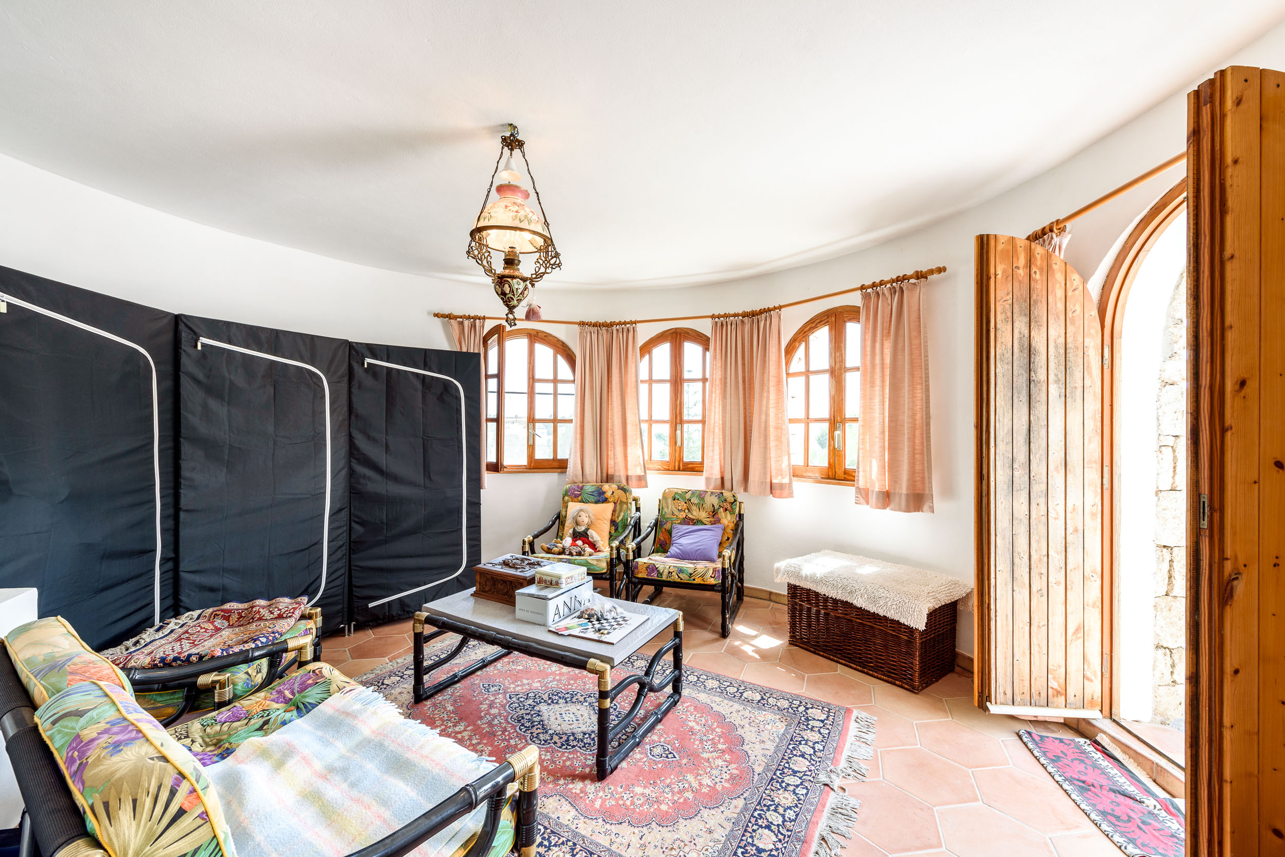 This twelve bedroom estate is situated in one of Ibiza’s most desirable neighbourhoods and consists of two properties, one large main house and a set of four independent apartments which are fully legally registered all ready to be developed into a grander project. Minutes away from Talamanca beach and within close proximity to the year-round village of Jesus, both nightlife and nature merge in this highly in-demand part of the island close to Ibiza town. Traditional Ibizenco features such as terracotta tiling and exposed sandstone walls add gravitas to what is actually a recent build, whilst beamed ceilings, and wooden door frames on bedroom balconies create a farmhouse feel. A large swimming pool is shared by both buildings where palm trees, bougainvillea and tended cacti create shade for lounging and outdoor dining. For an investor with vision, this villa is a dream place to start.