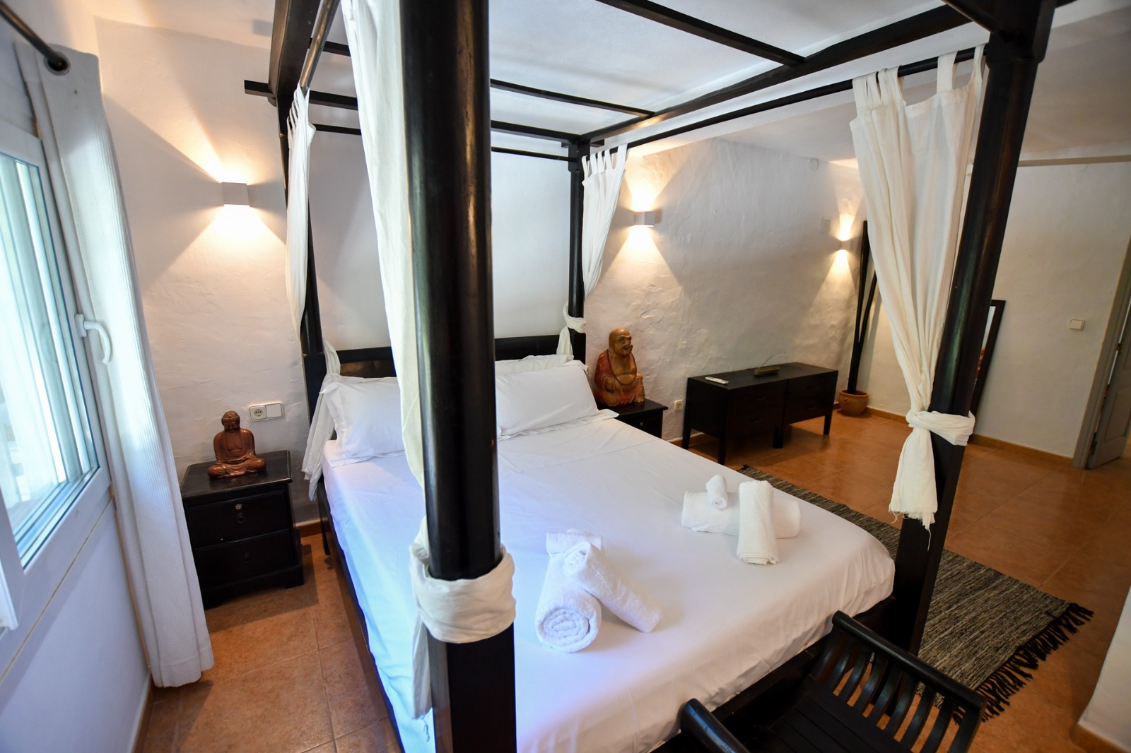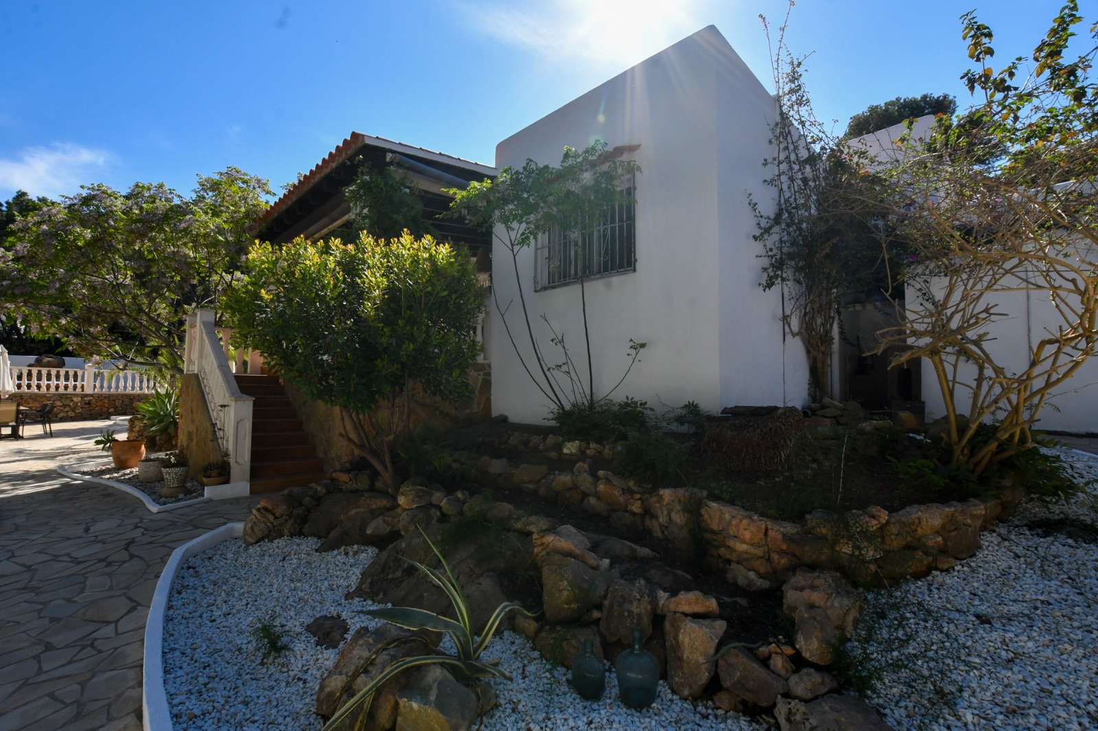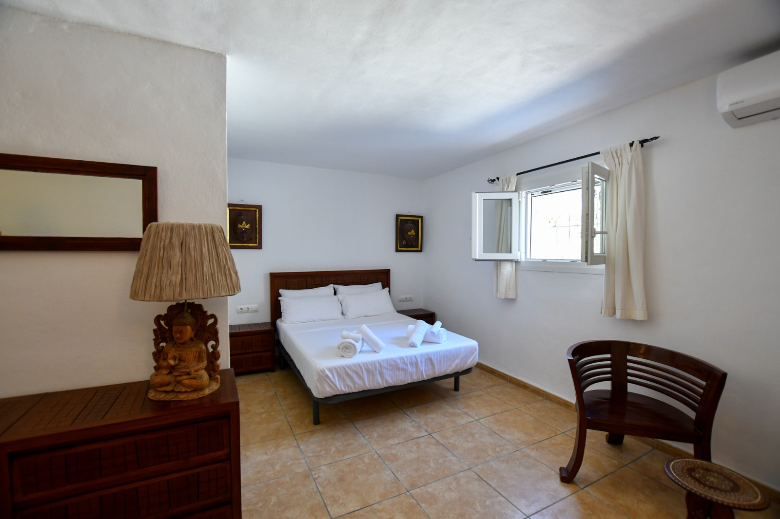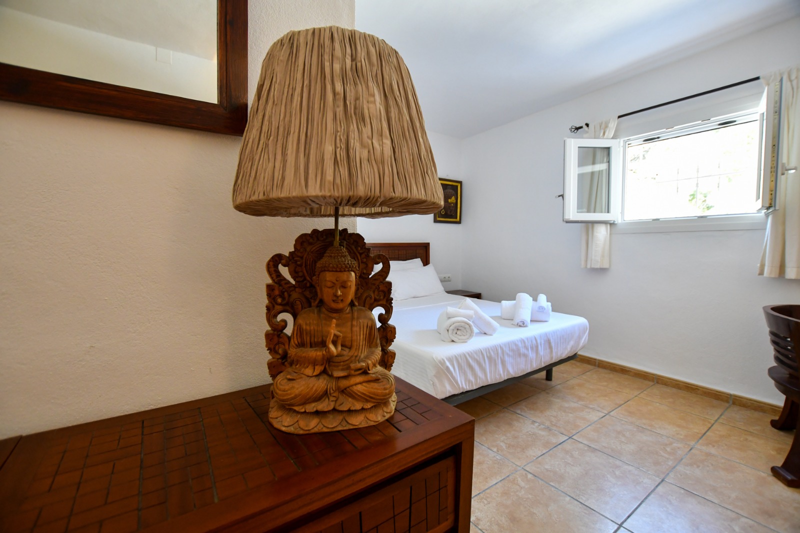 This villa is full of character and charm in true north Ibiza style. Set in pine forests, close to beaches with sand and turquoise waters, it is surrounded by gardens with Mediterranean planting and palm trees. As that style suggests, those gardens are rich with boho chill-out areas, whispers of Bali, fairy-tale lighting for magical nights and a graceful little swimming pool. The white-washed house itself is low and unassuming; inside it has been updated for living that is authentically unpretentious while comfortably modern (including the internet connection). The rooms are spacious: large open plan lounge and dining with an open fireplace, a big well-equipped kitchen that opens to the garden, four bedrooms and bathrooms. A separate casita provides guest accommodation with its own kitchen and additional ensuite bedroom. A wonderful position for authentic Ibiza: Bar Anita in San Carlos is 3km away, the lovely cove at Cala Mastella a little walk.