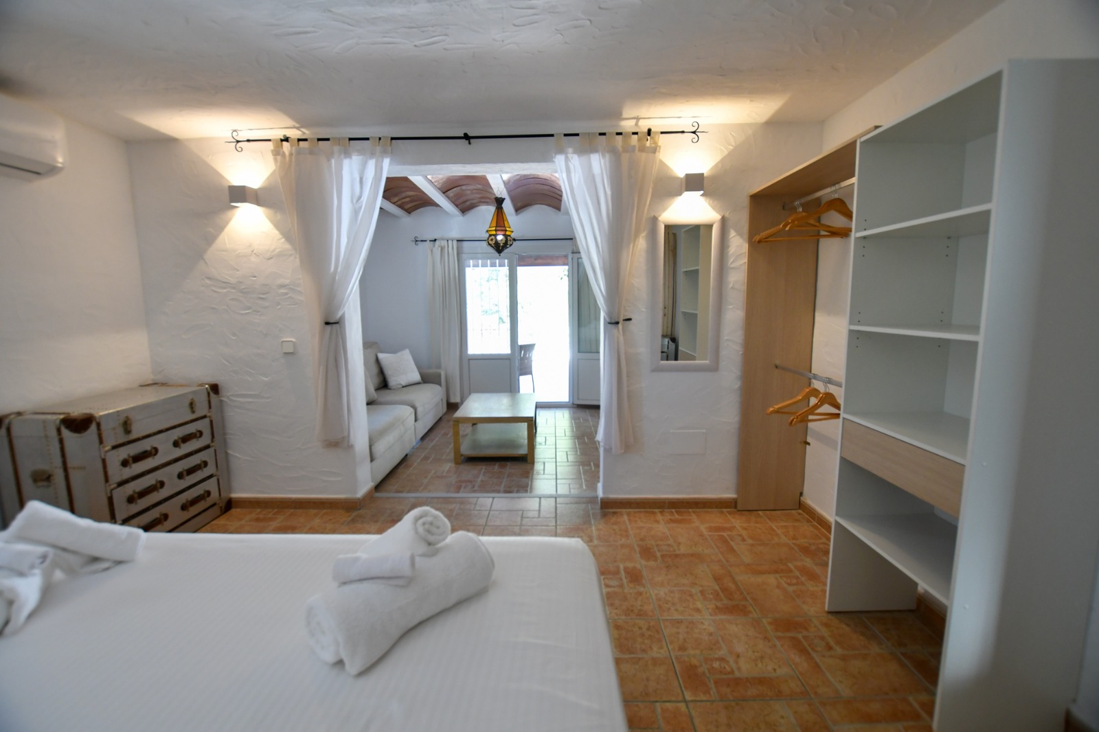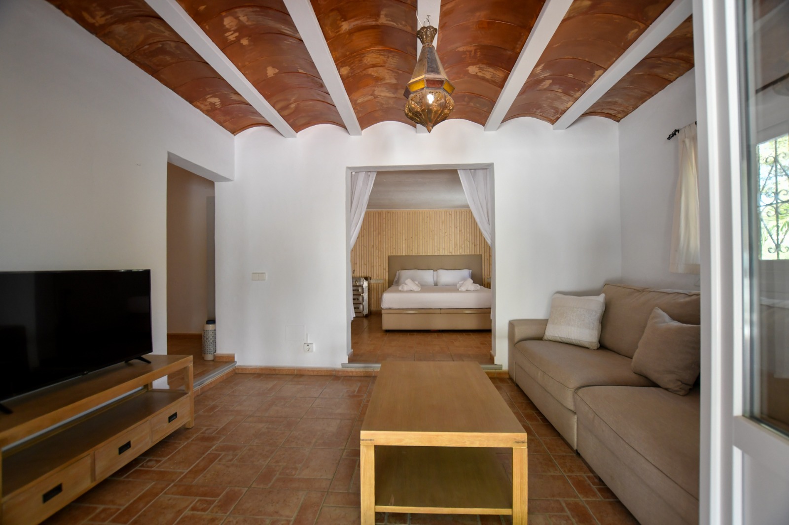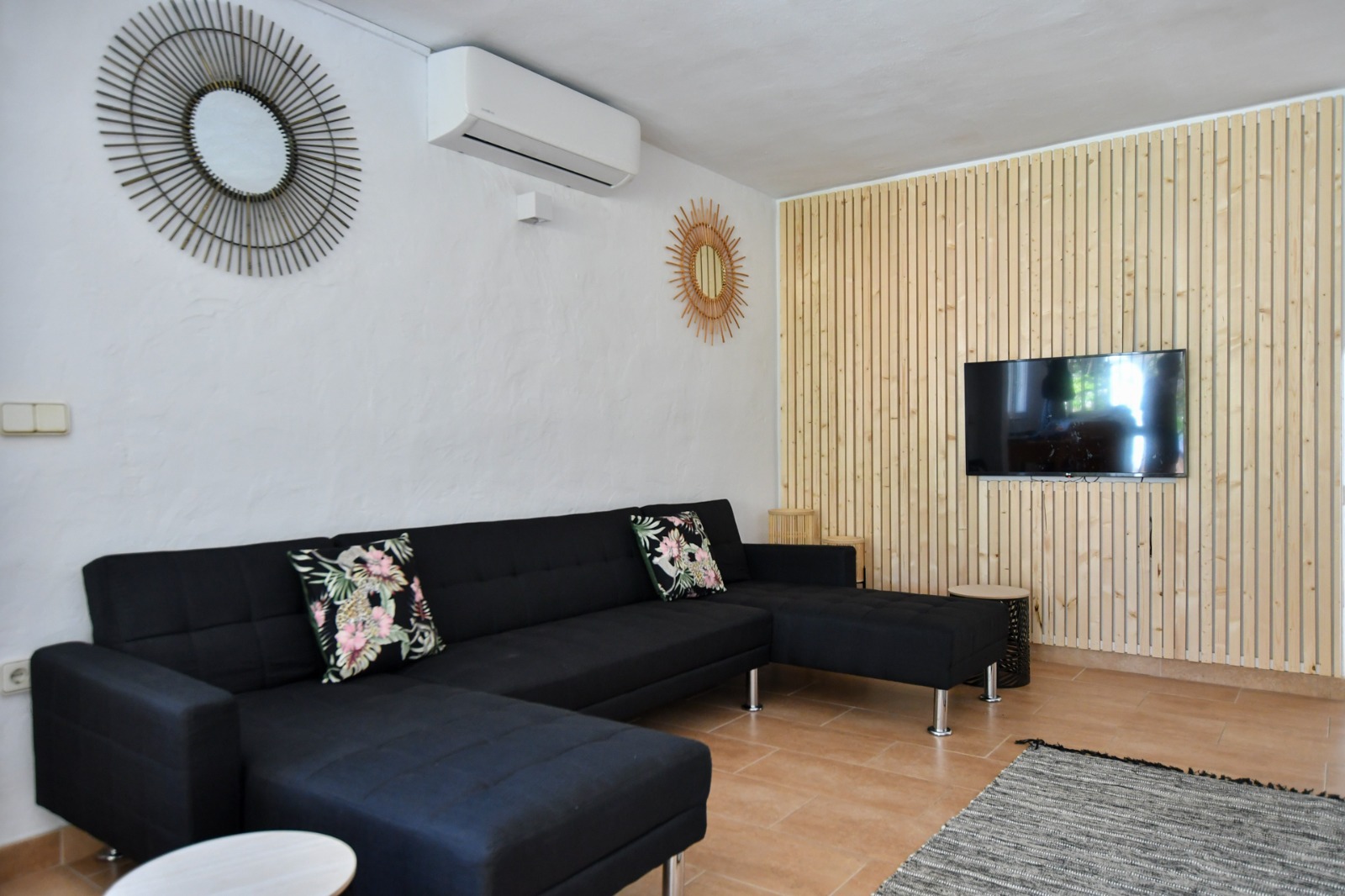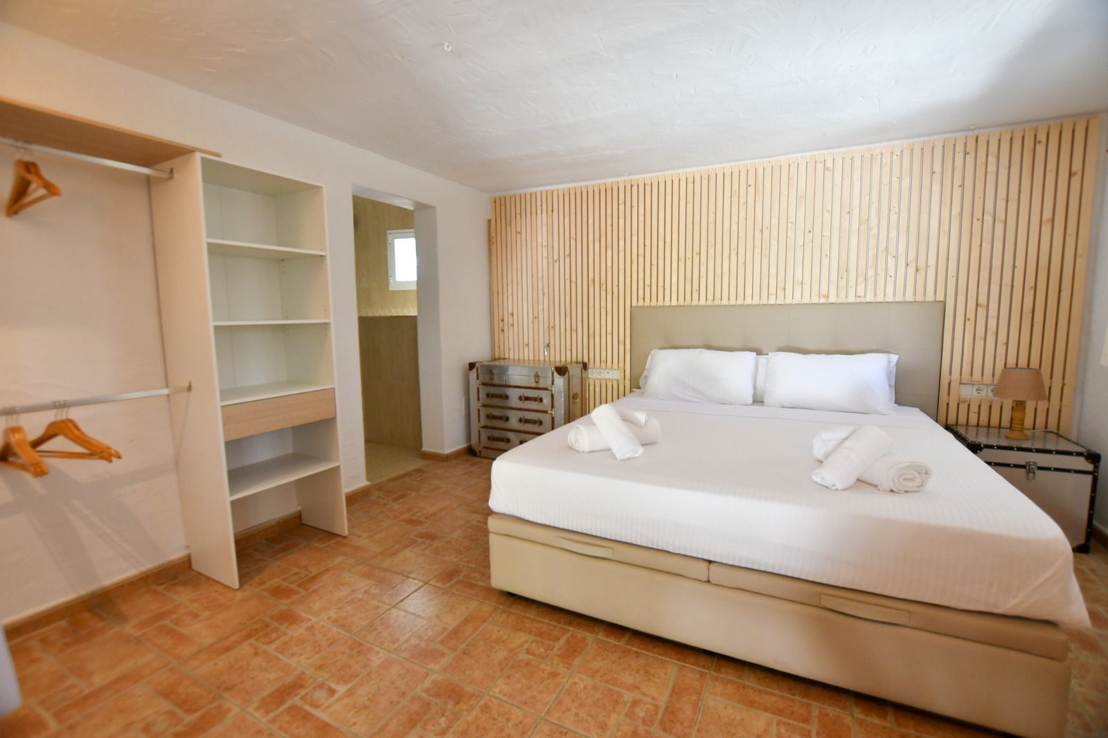 This villa is full of character and charm in true north Ibiza style. Set in pine forests, close to beaches with sand and turquoise waters, it is surrounded by gardens with Mediterranean planting and palm trees. As that style suggests, those gardens are rich with boho chill-out areas, whispers of Bali, fairy-tale lighting for magical nights and a graceful little swimming pool. The white-washed house itself is low and unassuming; inside it has been updated for living that is authentically unpretentious while comfortably modern (including the internet connection). The rooms are spacious: large open plan lounge and dining with an open fireplace, a big well-equipped kitchen that opens to the garden, four bedrooms and bathrooms. A separate casita provides guest accommodation with its own kitchen and additional ensuite bedroom. A wonderful position for authentic Ibiza: Bar Anita in San Carlos is 3km away, the lovely cove at Cala Mastella a little walk.