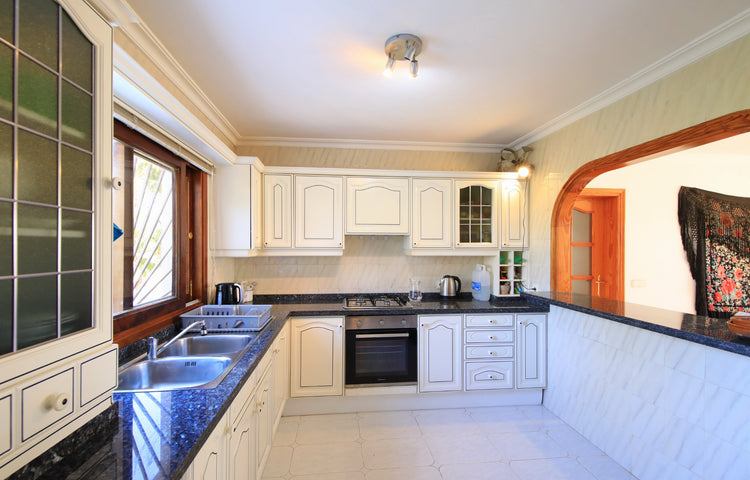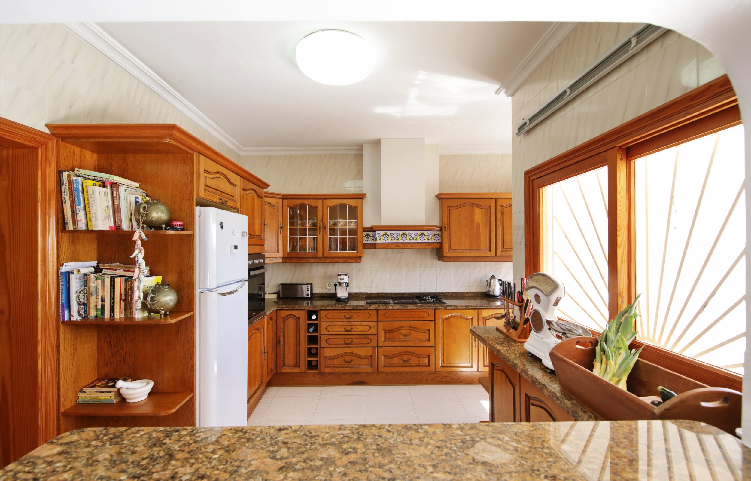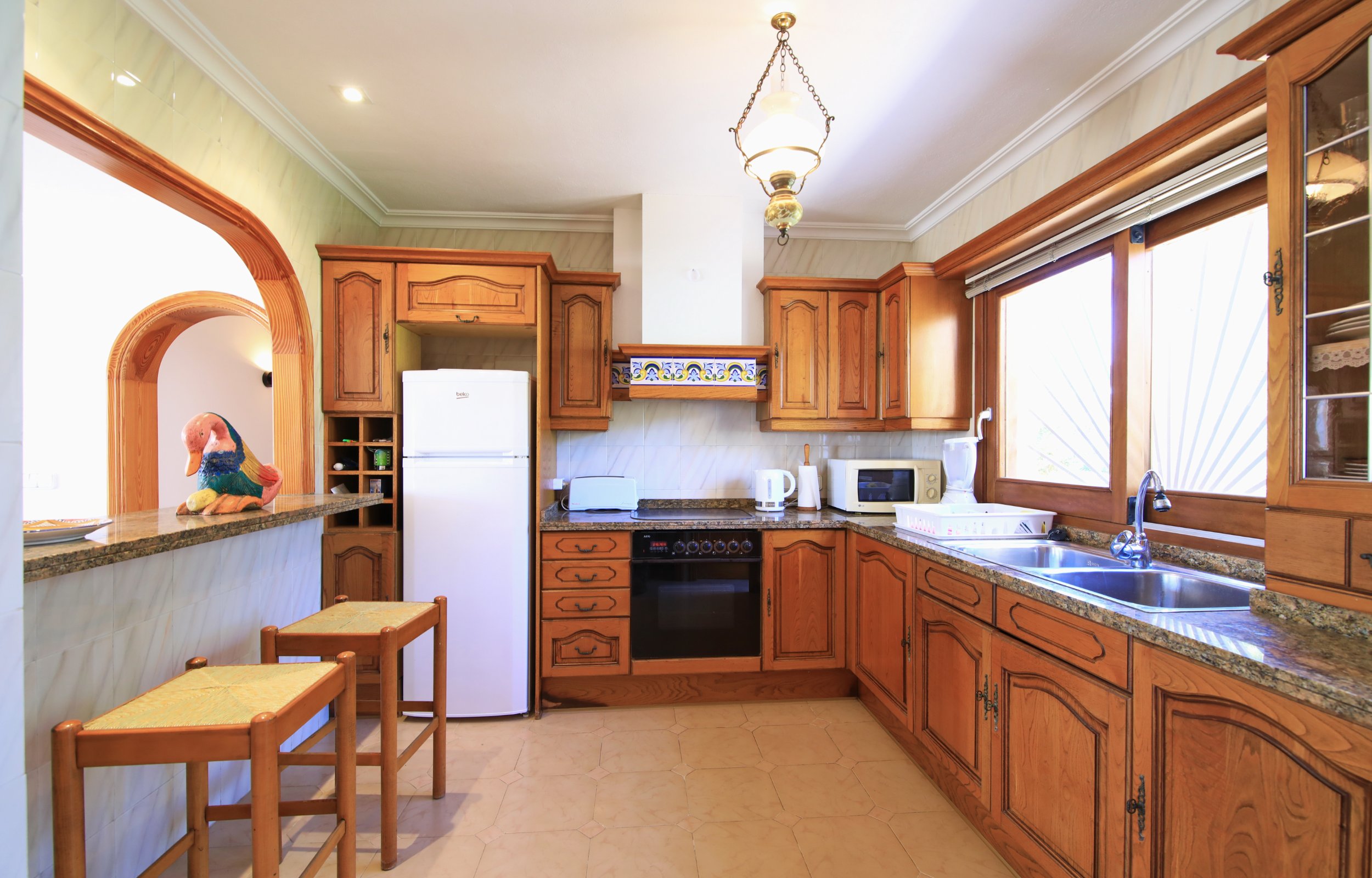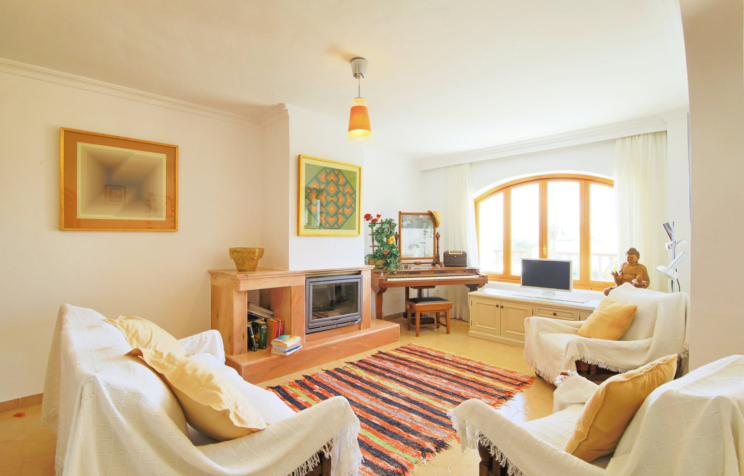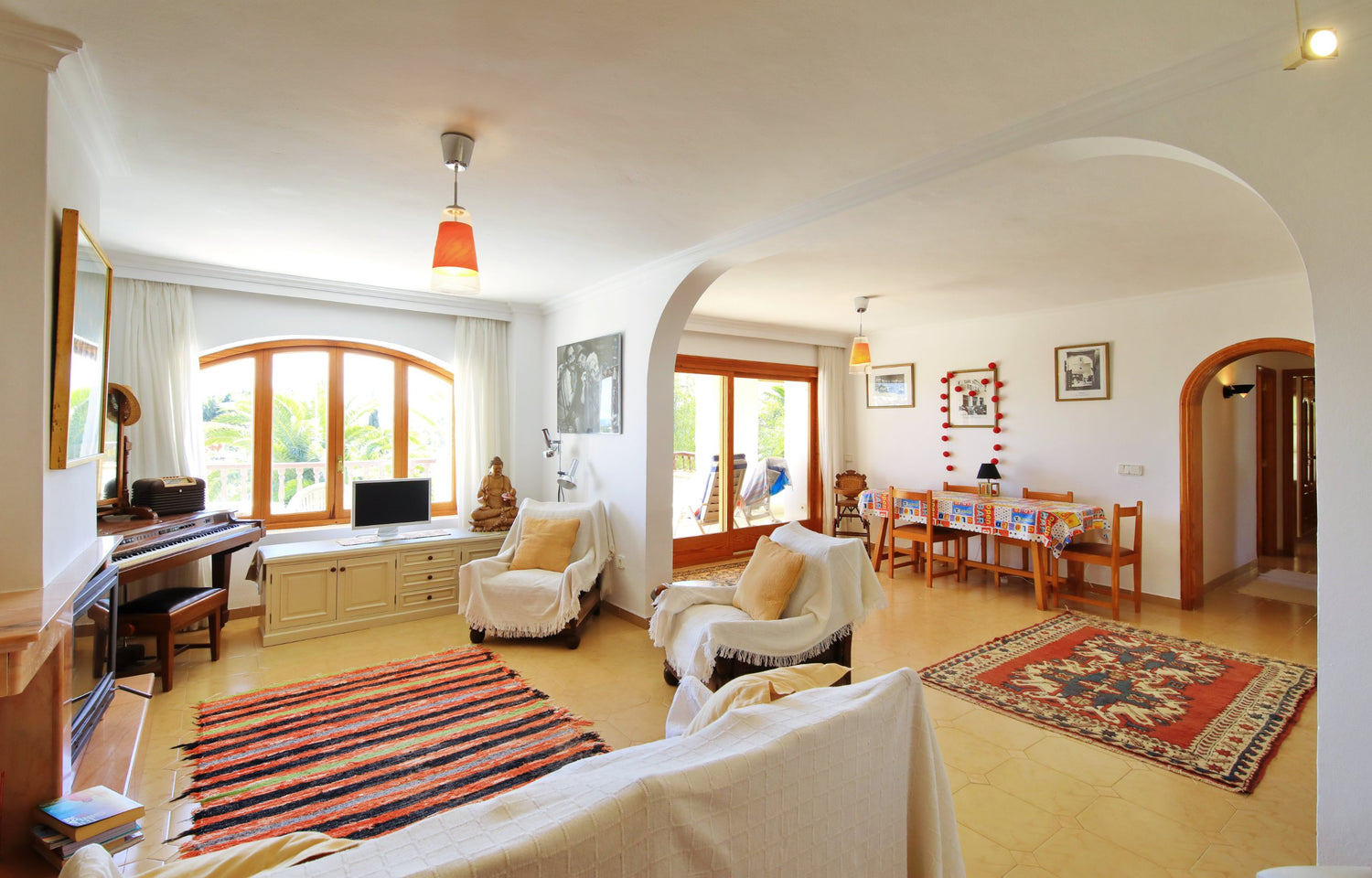 The main house on the ground floor of this Mediterranean style villa is spacious, elegant and brim-full of characterful features. Inside a stone tower, typical of the island, a staircase to the first floor accesses two apartments, each with its own entrance. Interiors are all high-ceilinged and light-filled, opening onto shady porches and terraces. Ground floor accommodation is graciously appointed, with two bedrooms and bathrooms (one ensuite), a kitchen, utility room and a generous living room with a fireplace. Upstairs, each apartment makes a welcoming home in itself, with two bedrooms, a family bathroom, living space with a substantial kitchen and a terrace with lovely views. The total built area of 690m2 occupies a plot of 1.600m2. Colourful gardens are shaded by mature trees and equipped with a large swimming pool and outside kitchen. This property, with its excellent connections to Ibiza town, is an opportunity full of potential for year-round island life.