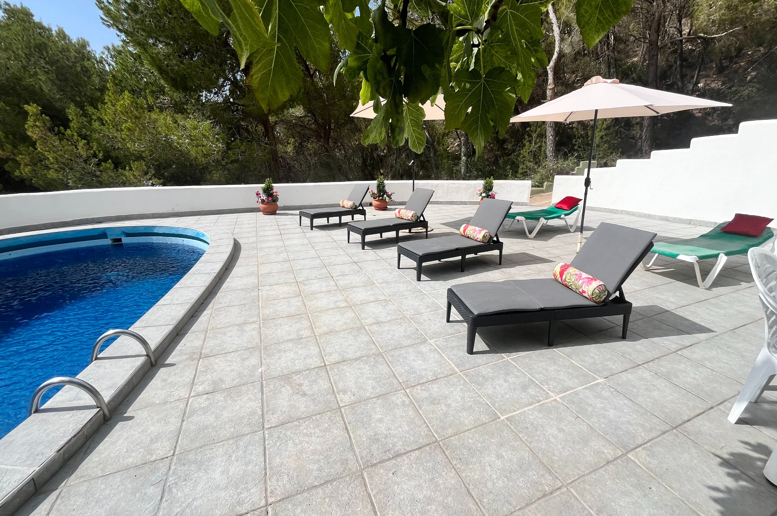 Stunning sunsets, privacy and peaceful outdoor living and 10 minutes’ walk to an iconic Ibiza beach.