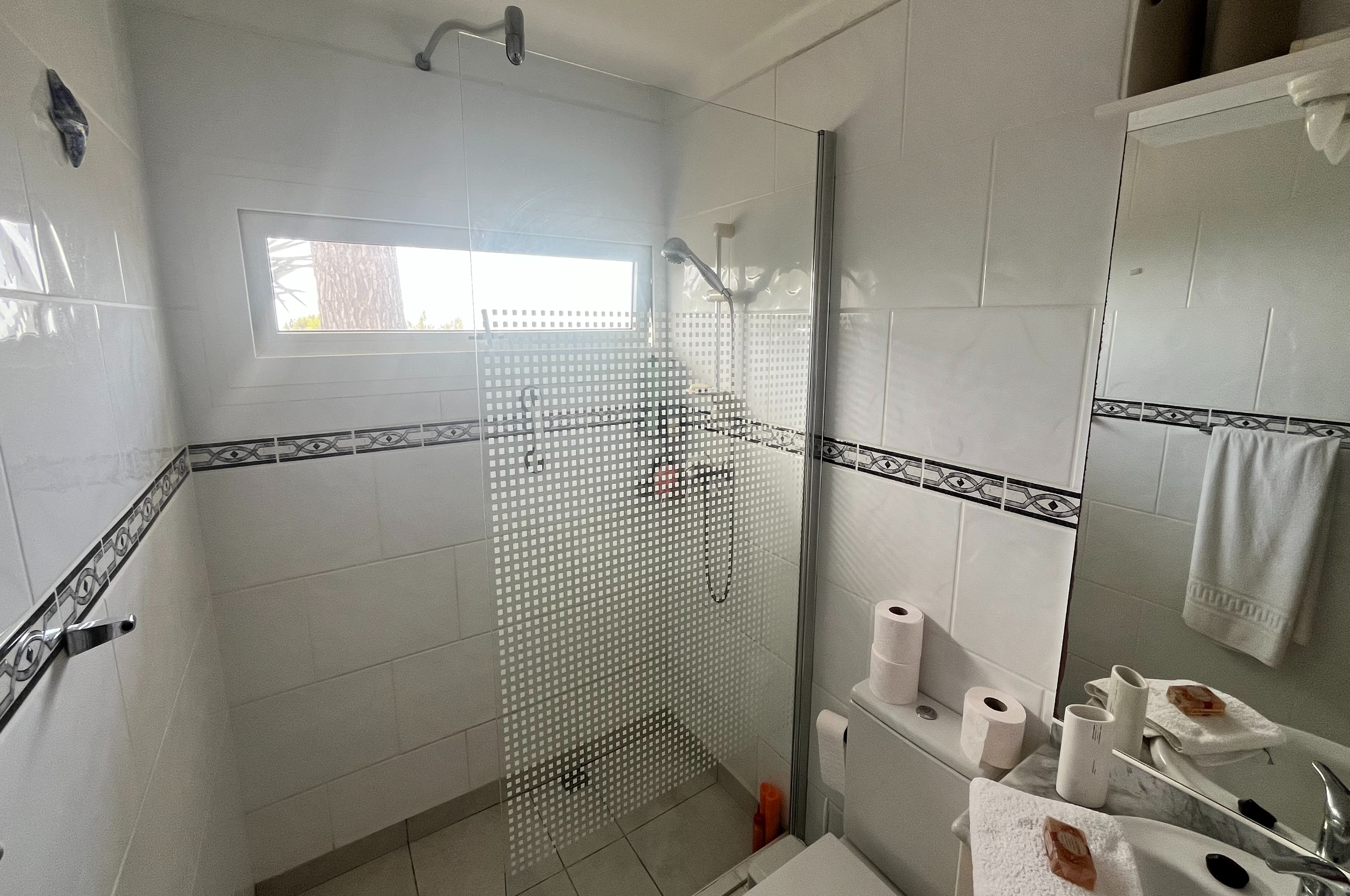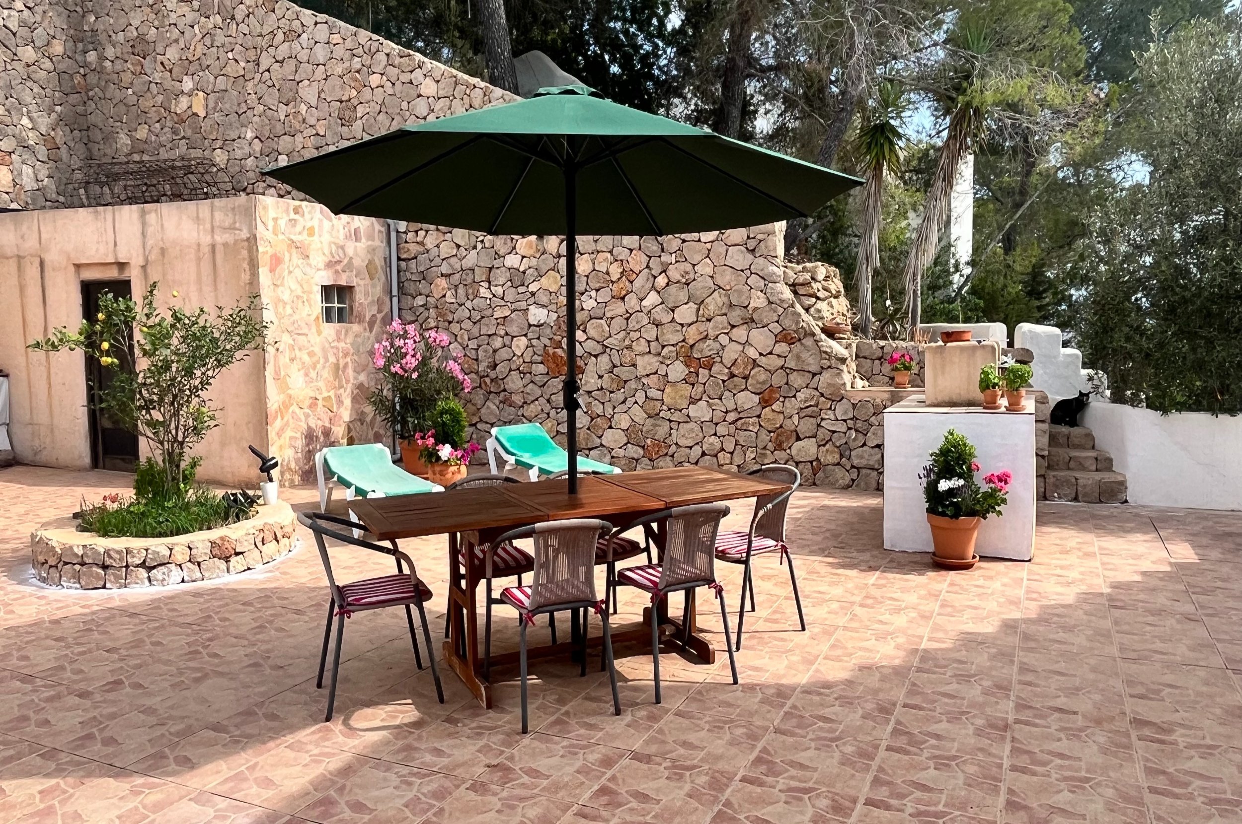 The amazing location of this unique property offers beautiful panoramic views of the sea and sunset. Nestled in the hillside 10 minutes’ walk above the idyllic Cala Salada, the 1,461sqm plot yields terraces, a BBQ area, a covered dining space and a pool. Large windows provide interiors with plenty of natural light while showcasing the spectacular views. The main house is equipped with a modern open kitchen, fireplace, an air conditioning/heating system and a laundry, as well as 3 bedrooms and bathrooms. Additionally, the guesthouse provides a 4th bedroom and bathroom and the large garage brings plenty of storage space. This fabulous property already holds a tourist licence for 6 guests making it an excellent investment.