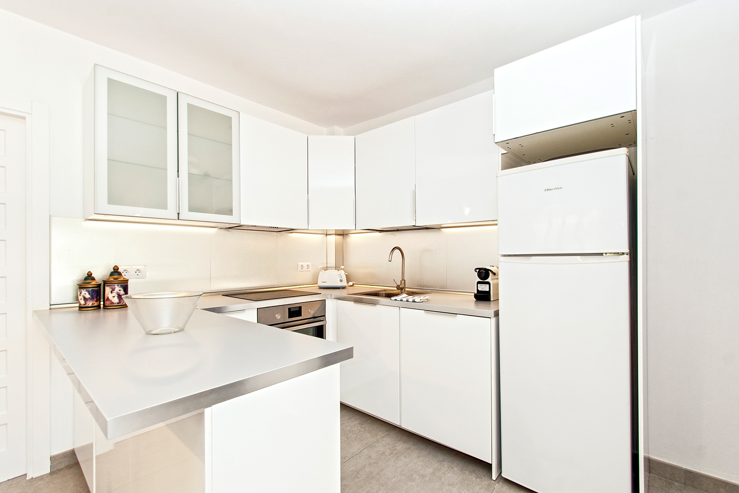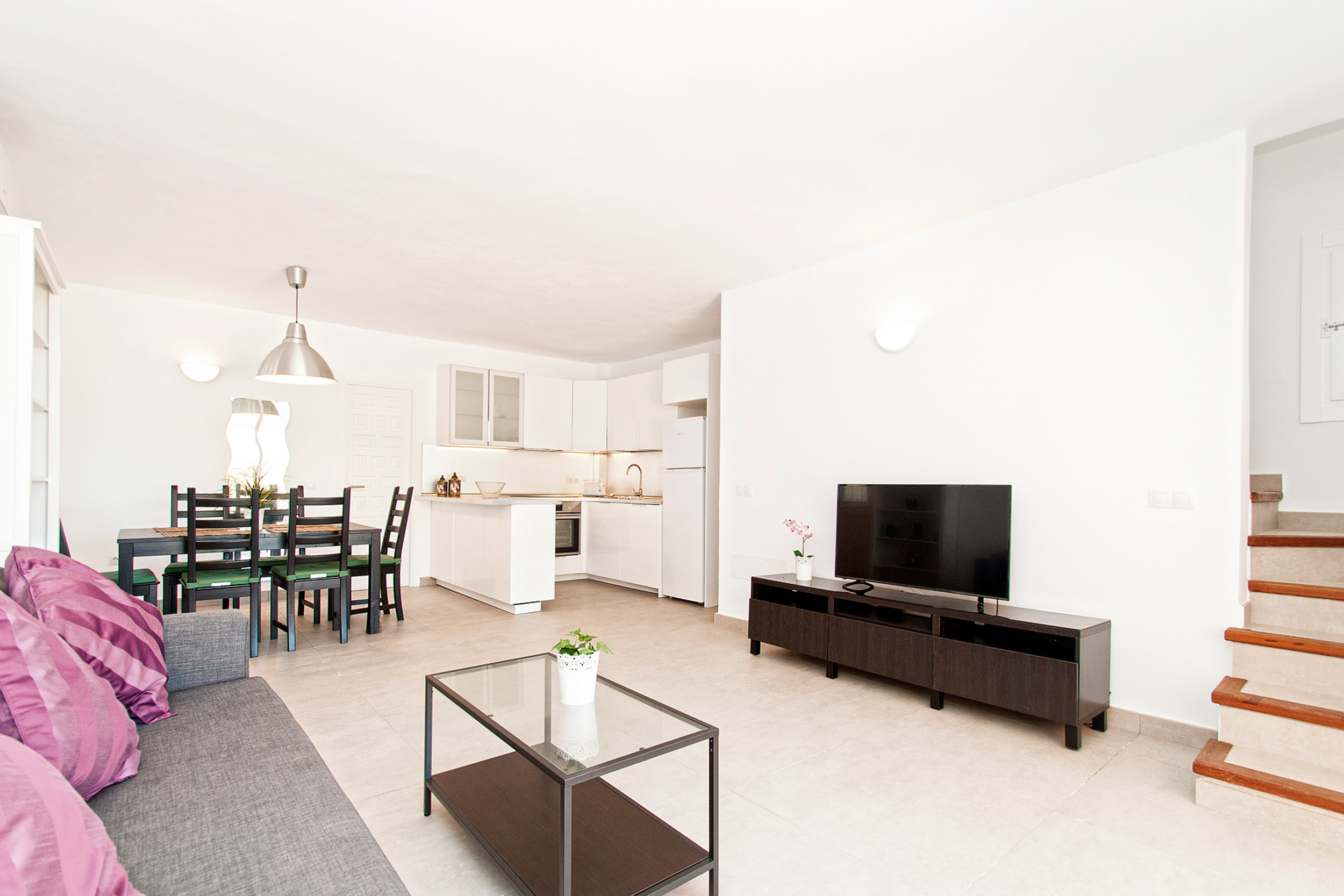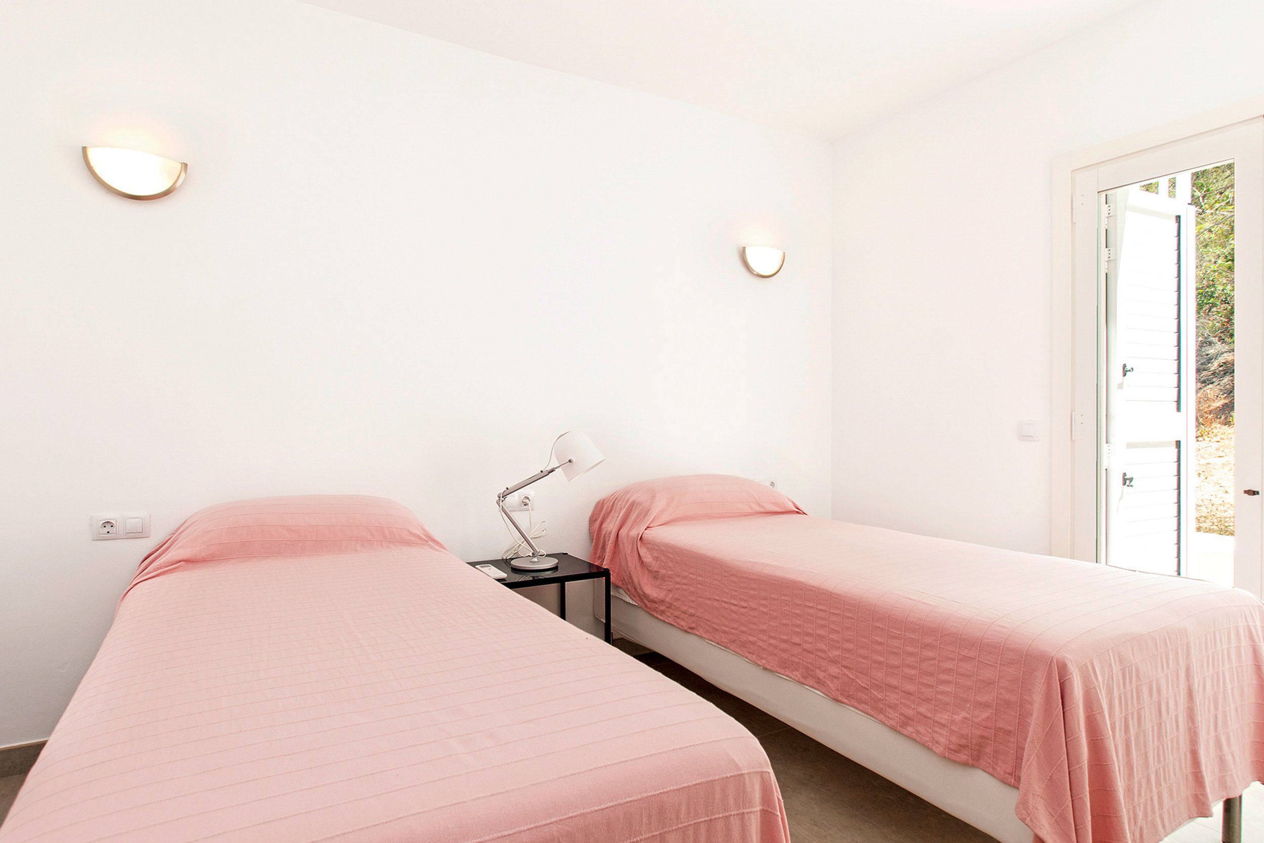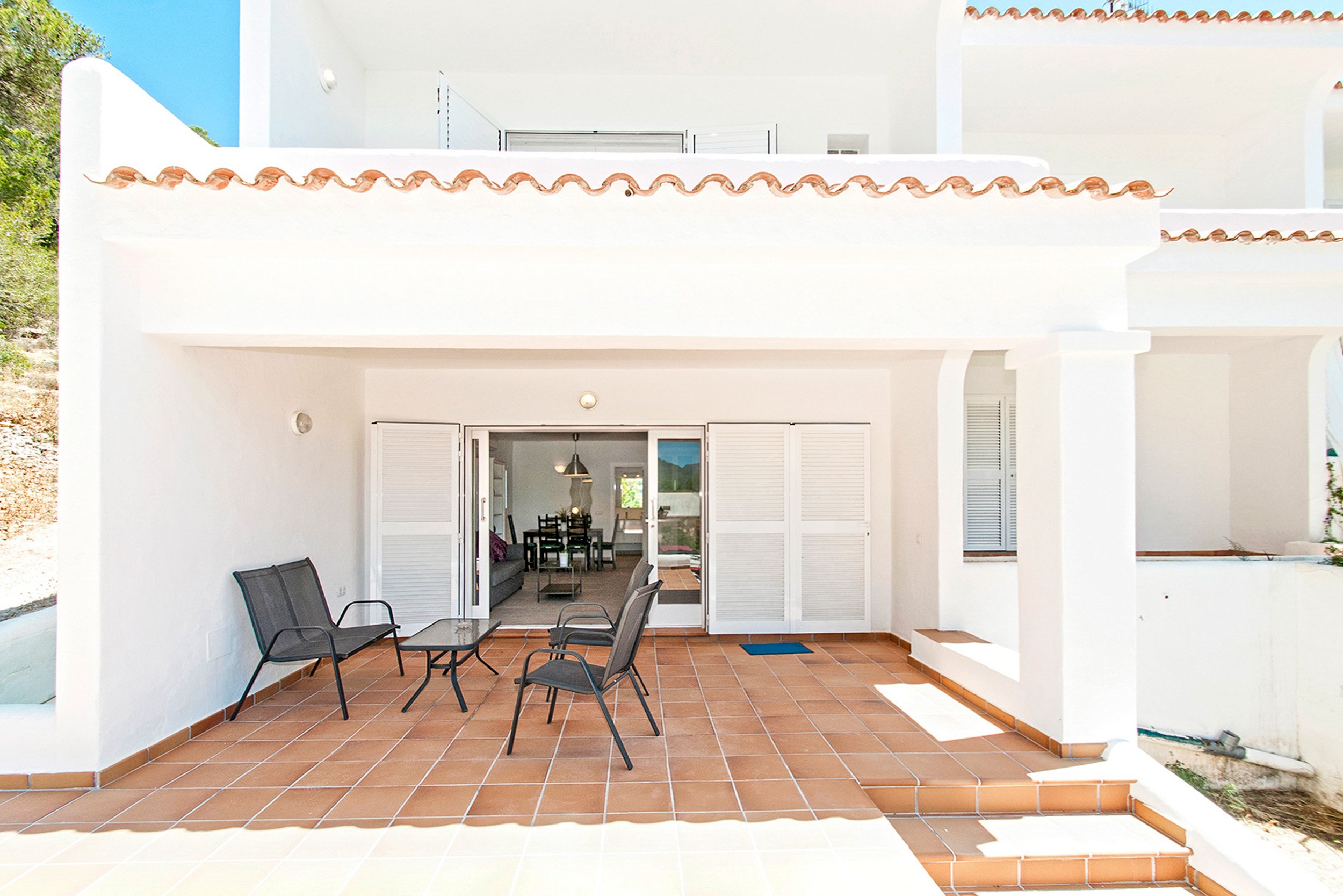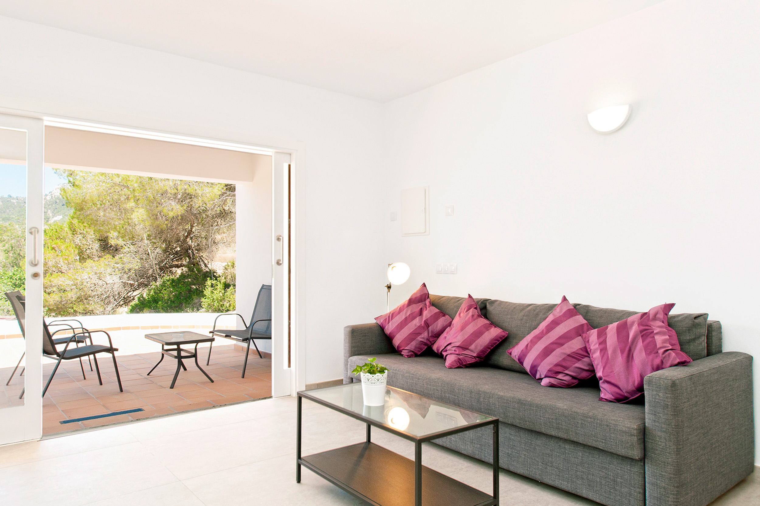 This charming semi-detached home is part of a small complex of just three other houses near San Jose. Designed with a nod towards traditional island architecture, this is pure Mediterranean living. Recently decorated to the highest standard, this property takes full advantage of sea views and the island lifestyle. Enter through large picture windows into the main living area where a brand new open plan kitchen and dining space lead to the living room and a tiled covered porch overlooking the lush pine forest. The upper level contains the second bedroom and master suite where French doors open to a private terrace. Summer days will play out on the roof terrace, perfect for yoga, snoozing or alfresco meals. From here the sea glitters majestically in the distance. Located just ten minutes from all the amenities and buzz of San Jose, this bright and breezy home is a fantastic home base or summer season second home.
