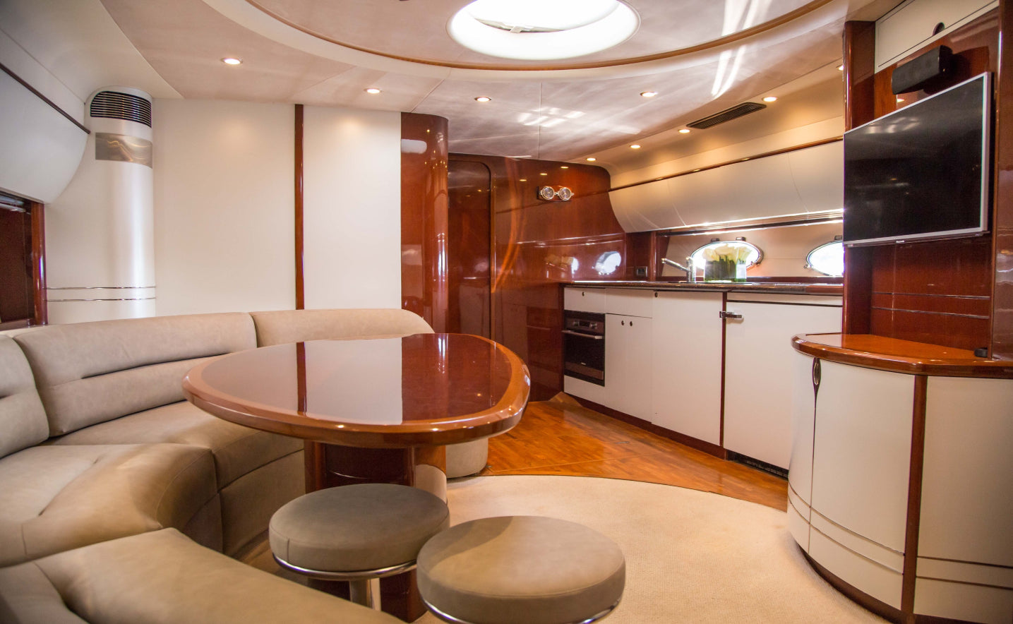 Finished to the highest of standards, this powerful speedboat offers luxurious interiors and exteriors for exploring the Pitiusas in style. The spacious cabins – two doubles and one twin – and modern bathrooms make it a great option for overnight charters.
