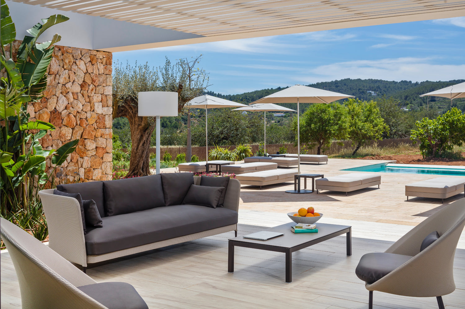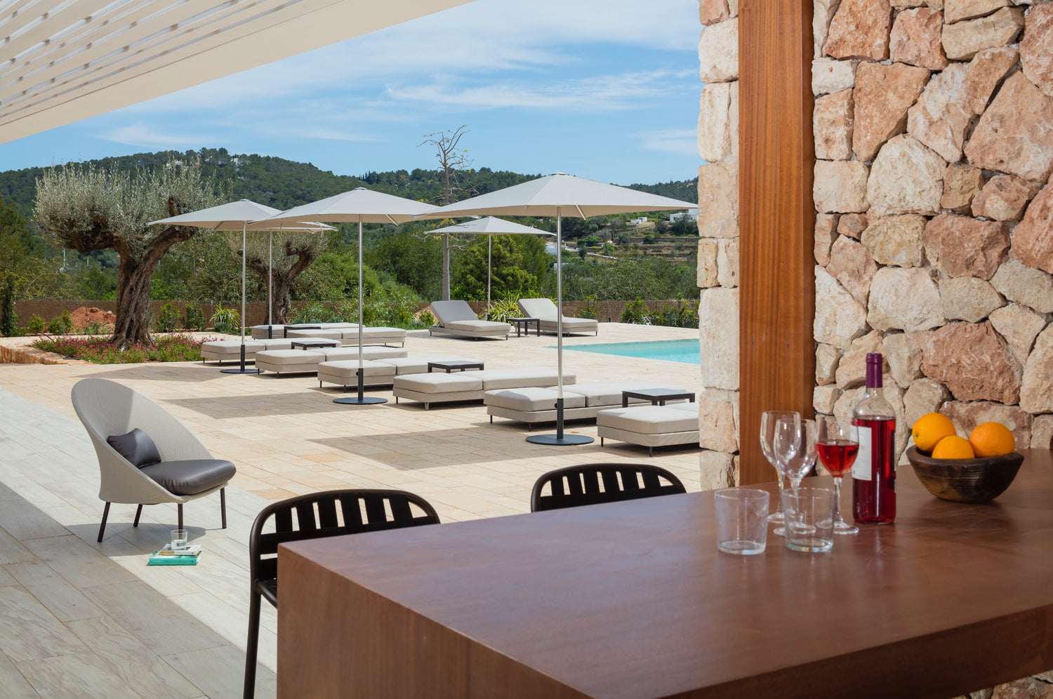 Low and sleek, Villa Estate nestles among pine trees in the Ibiza countryside. The position is tranquil but the island is small: beaches and the towns of Ibiza and Santa Eulalia are easily accessed from this fabulous holiday home. It is exquisitely designed for balmy Balearic days with a large, stylish porch area and terraces both shaded and sunny, out to an 18m pool. Interiors are pristine, a cool white retreat when the temperatures rise. There are well-equipped kitchens both inside and out. The 480m2 of air-conditioned space includes a well-proportioned living room with a fireplace. The seven bedrooms are all ensuite, five with king size double beds and two with twins. The plot of 20,000 m2 extends across gardens and olive groves and offers privacy as well as abundant space for enjoying life outside under Mediterranean skies.
