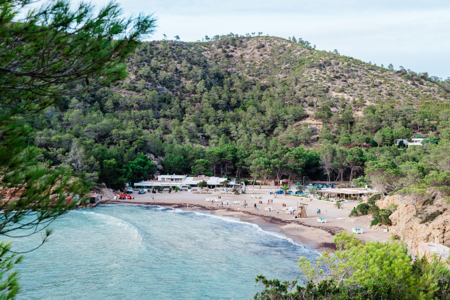 One of the only beaches in Ibiza that can actually lay claim to providing conditions good enough to surf, the dramatic backdrop of Cala Nova is unspoilt and rustic with a long arc of dark golden sand surrounded by rocky red cliffs and pine-clad hills. While the water is quite shallow, it does have a tendency to have quite strong rips so take care when swimming.