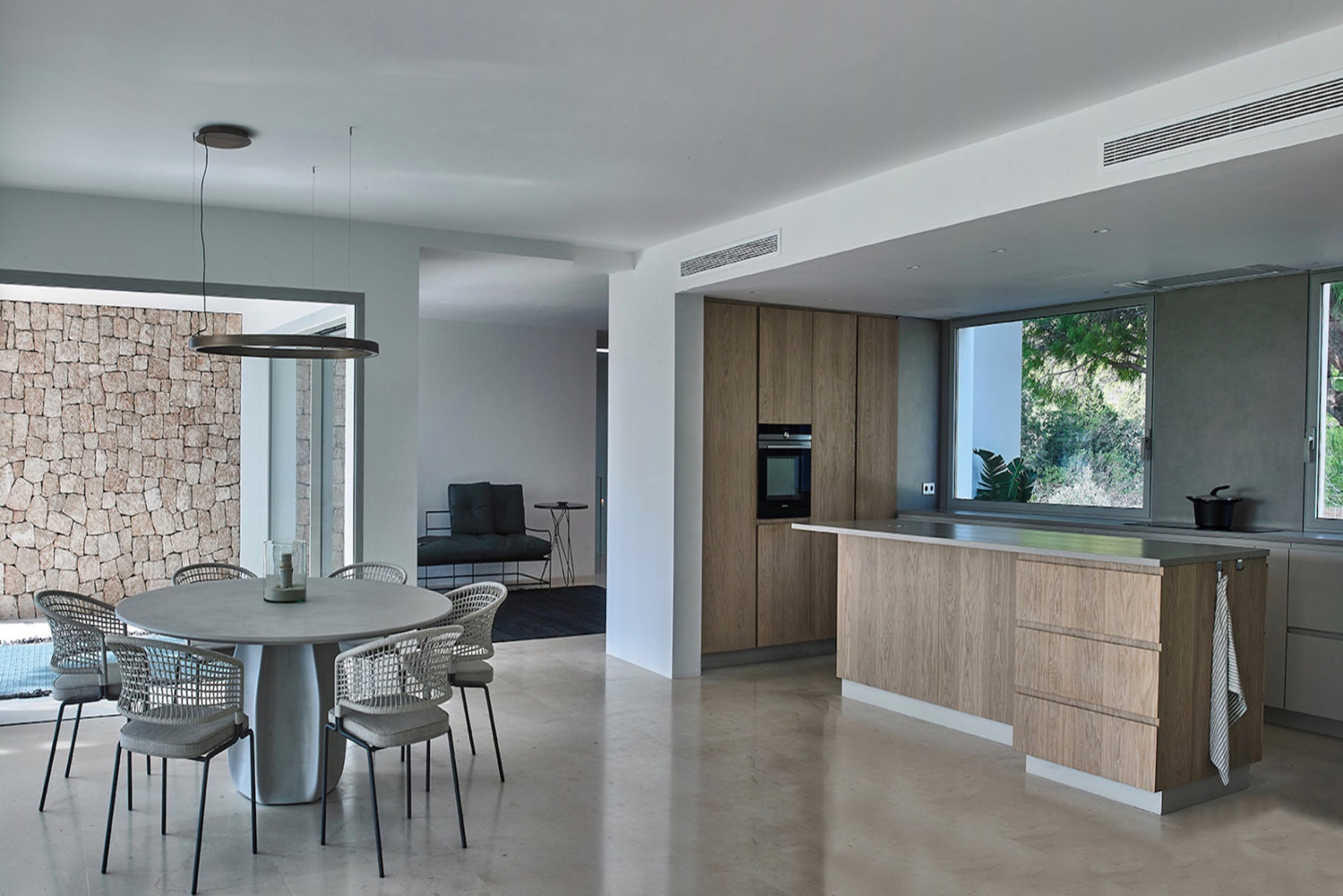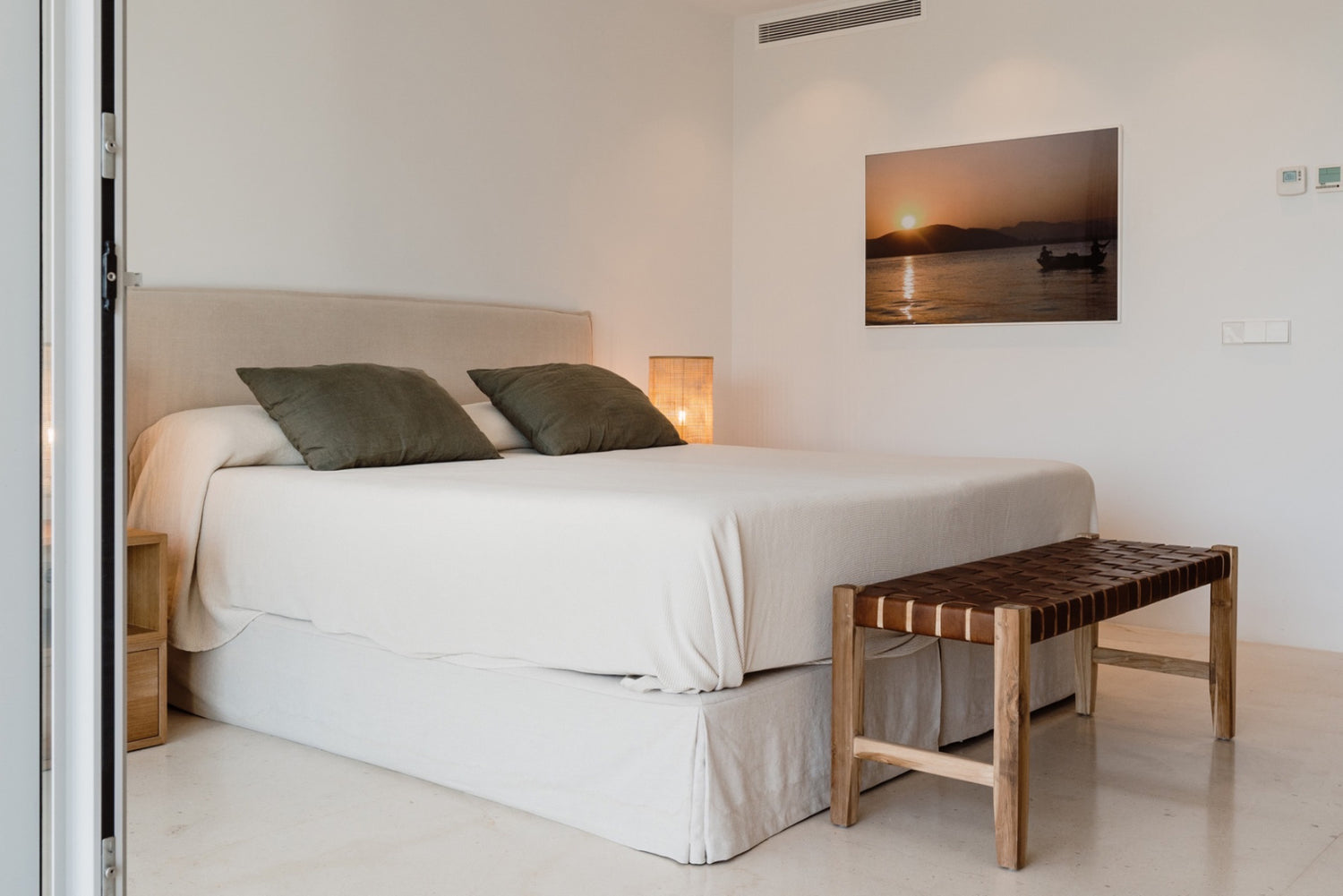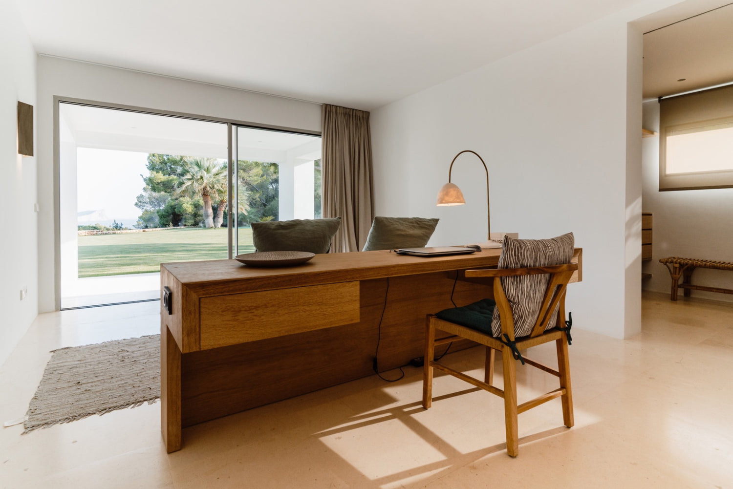 The building is low and white. A huge pool curves languidly, gently lapping the lawns at its edges. You can see the salt flats that brought centuries of prosperity to the White Island. Follow the horizon and there is the blue sea glittering around the stunning Cap des Falco. An alfresco lifestyle is lavishly catered for with sunny gardens, shady chill-out zones and outdoor dining. Interiors are effortlessly stylish in a relaxing, Ibiza style, clean lines, a palette of gentle colours and rooms full of light. The kitchen is elegant and all five ensuite double bedrooms are havens of calm and access terraces or gardens. Beaches are close by, as are Ibiza town and the airport. However, courts for padel and petanque, a well-equipped gym and a lovely terrace for yoga, will make it hard ever to leave the luscious lifestyle at the villa.